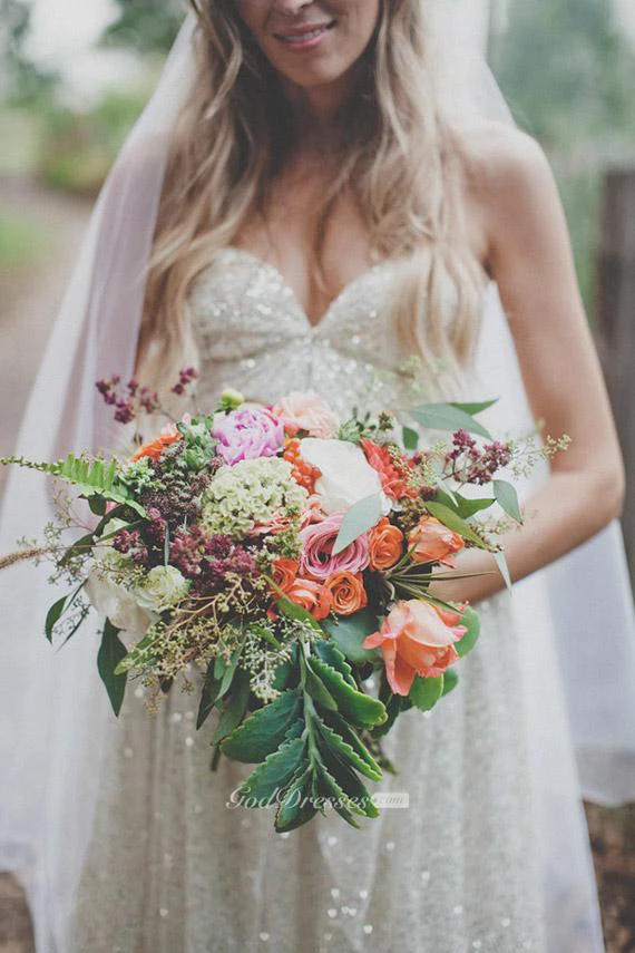 Glamorous Spaghetti Strap Sleeveless Wedding Dress Floor-length Sequins