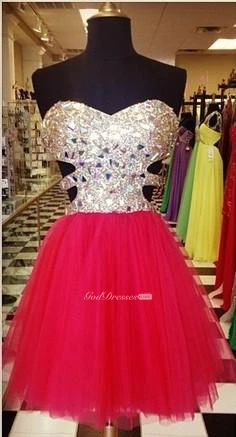 Glamorous Sweetheart Sleeveless Tulle Short Cocktail Dress With Crystals