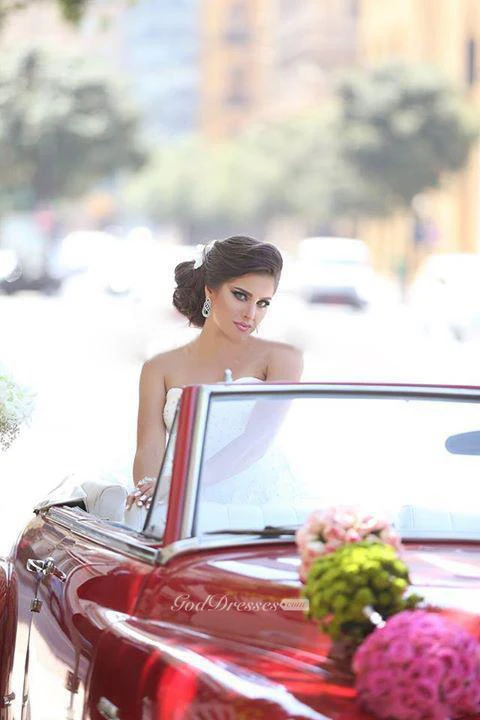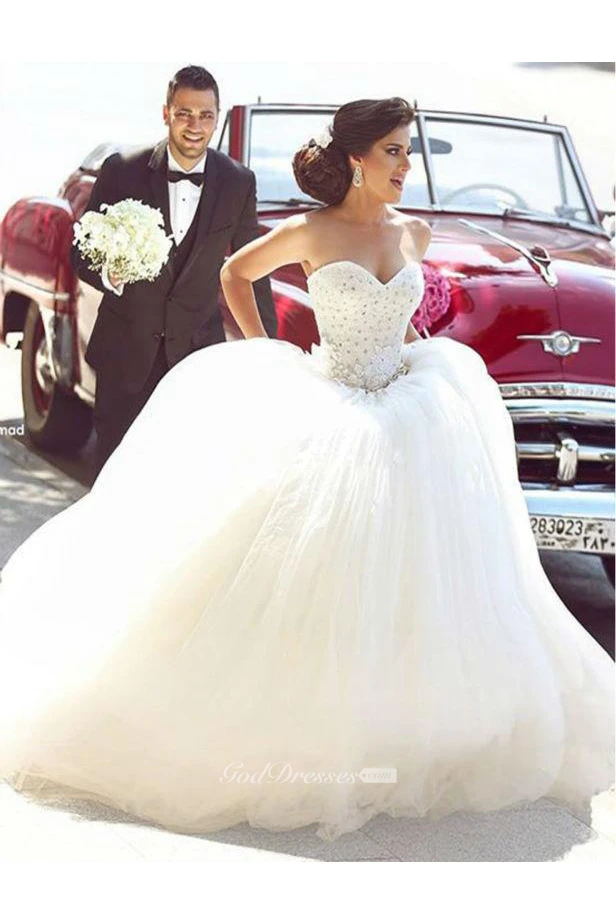 Glamorous Tulle Ball Gown Wedding Dress Appliques Beadings