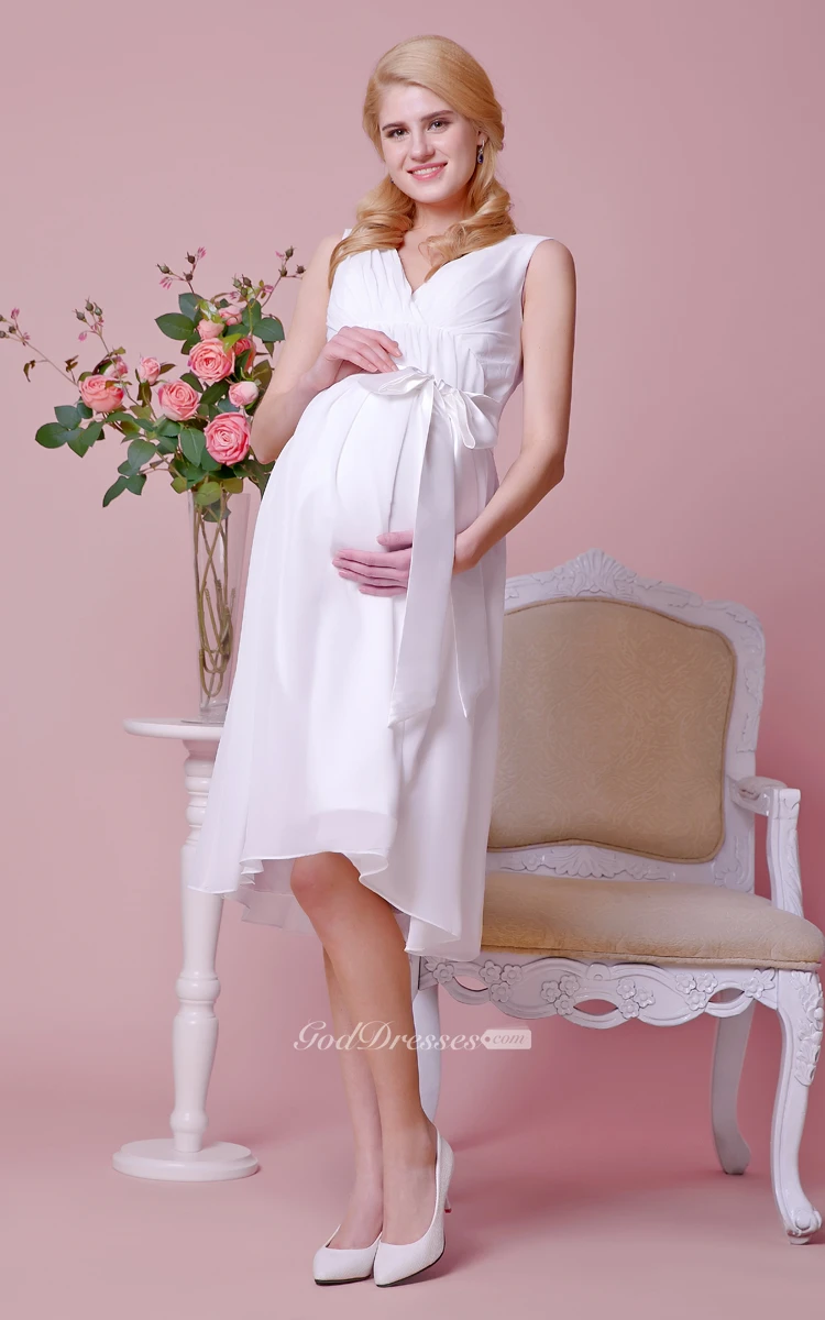 Glamorous V-neck A-line Knee Length Chiffon Dress With Satin Bow
