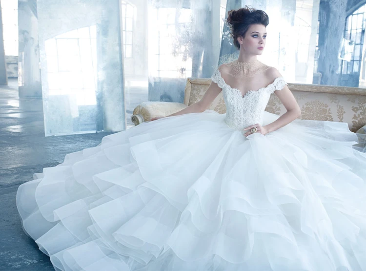 Glamourous Off the Shoulder Lace Bodice Tiered Tulle Ball Gown