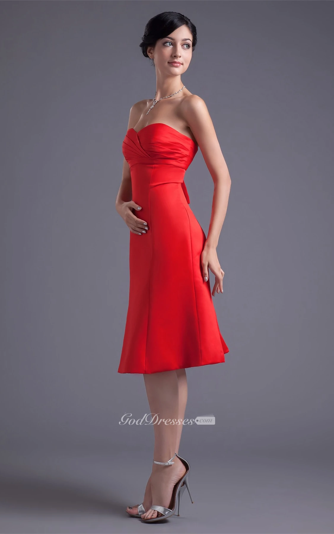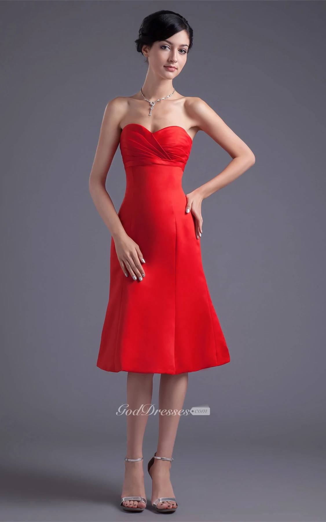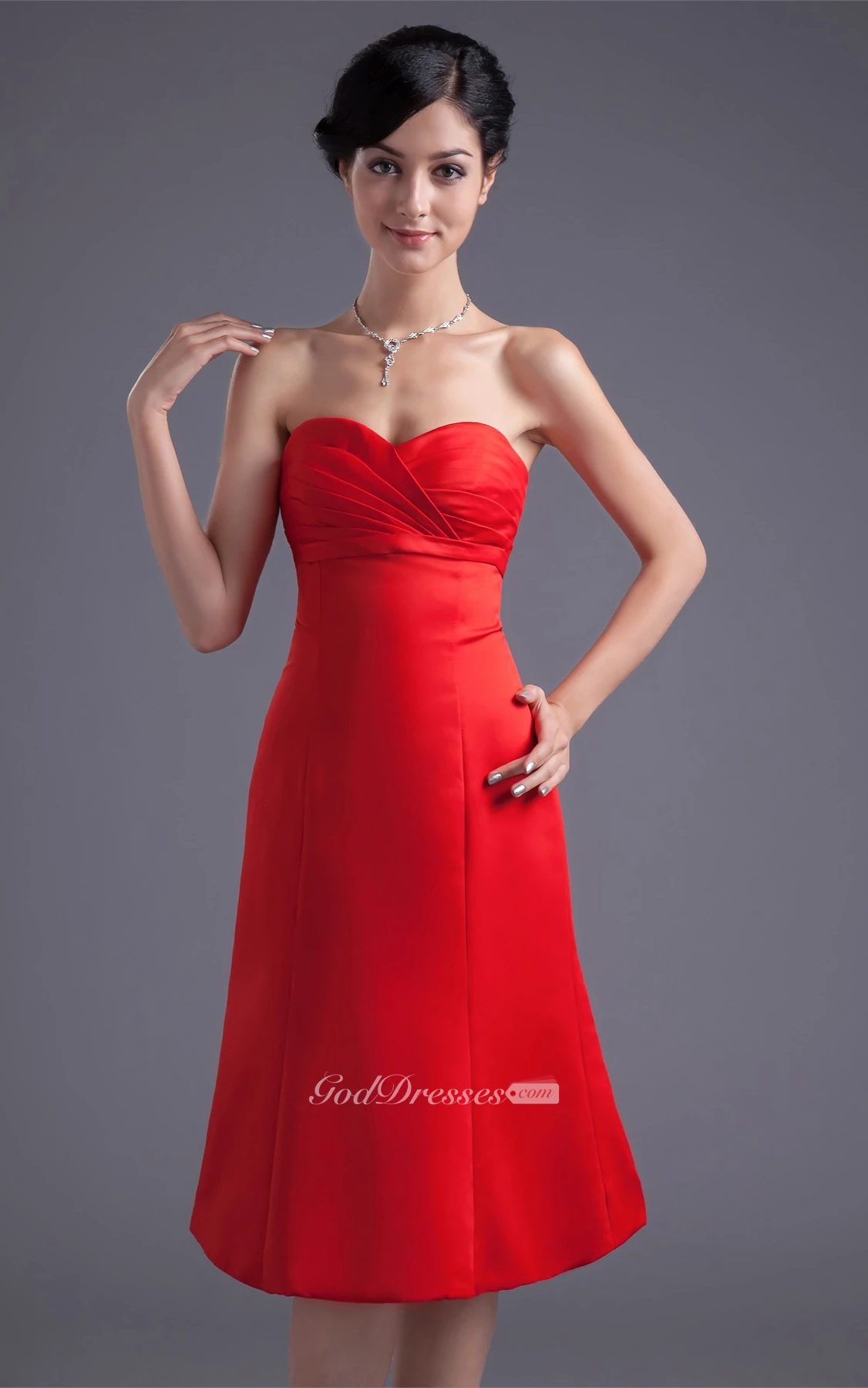 Glossy Sleeveless Midi Satin a Line Sweetheart Bridesmaid Dresses