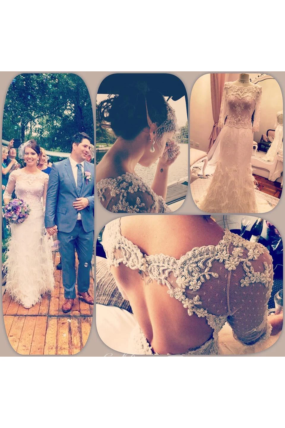 Gorgeous 3-4 Sleeve Fill Lace Wedding Dress Mermaid With Feather