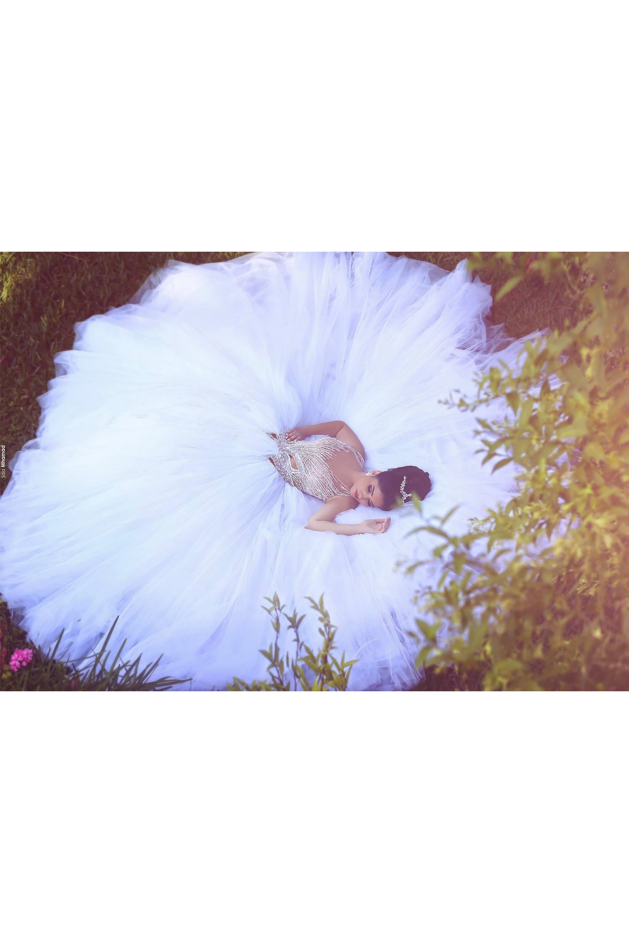 Gorgeous Beadings Tulle White Wedding Dress Ball Gown Straps Court Train