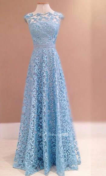 Gorgeous Blue Lace Evening Dress Sleeveless Floor Length