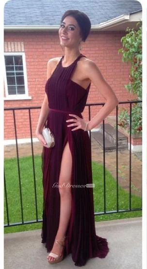 Gorgeous Burgundy Sleeveless Prom Dresses Long Chiffon
