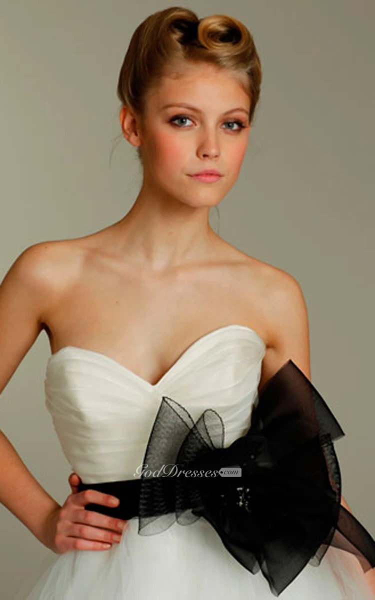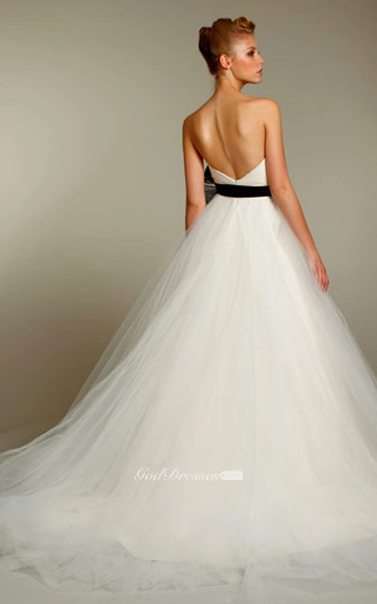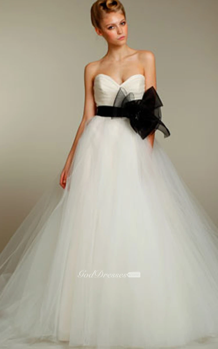 Gorgeous Pleated Sweetheart Bodice Tulle Ball Gown With Floral Belt