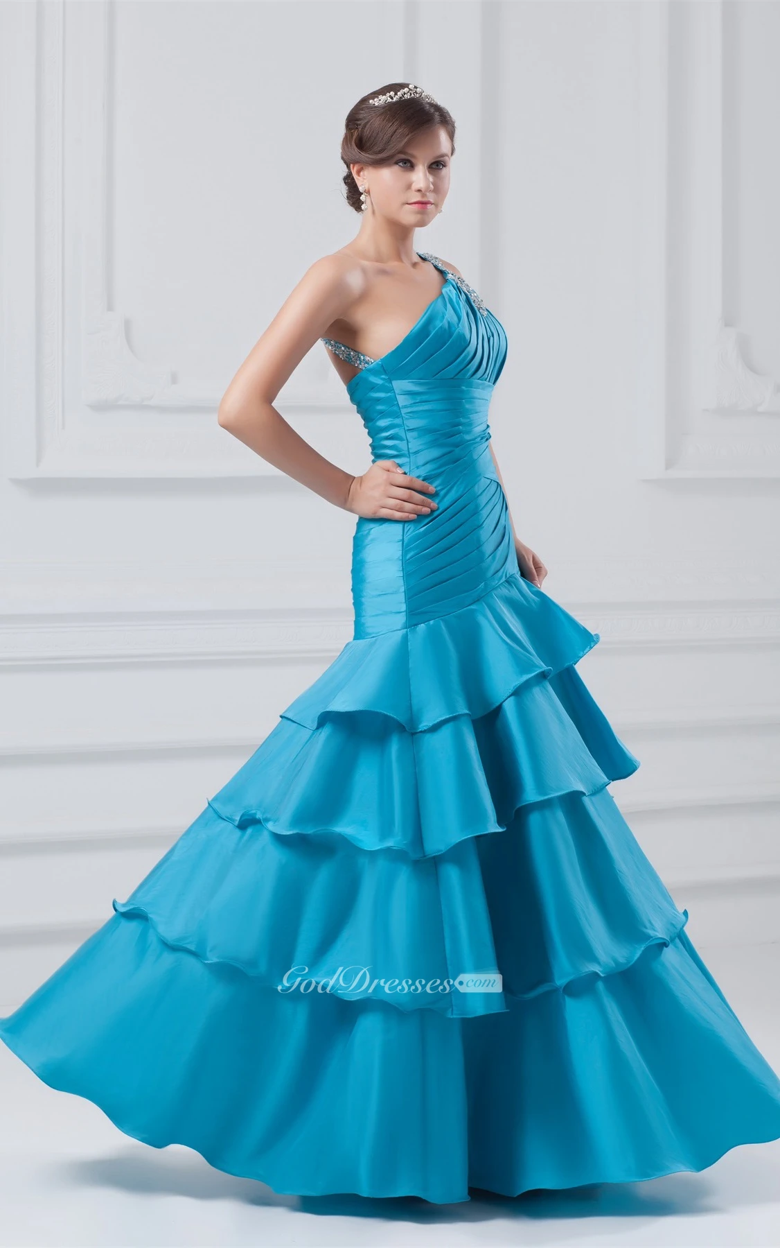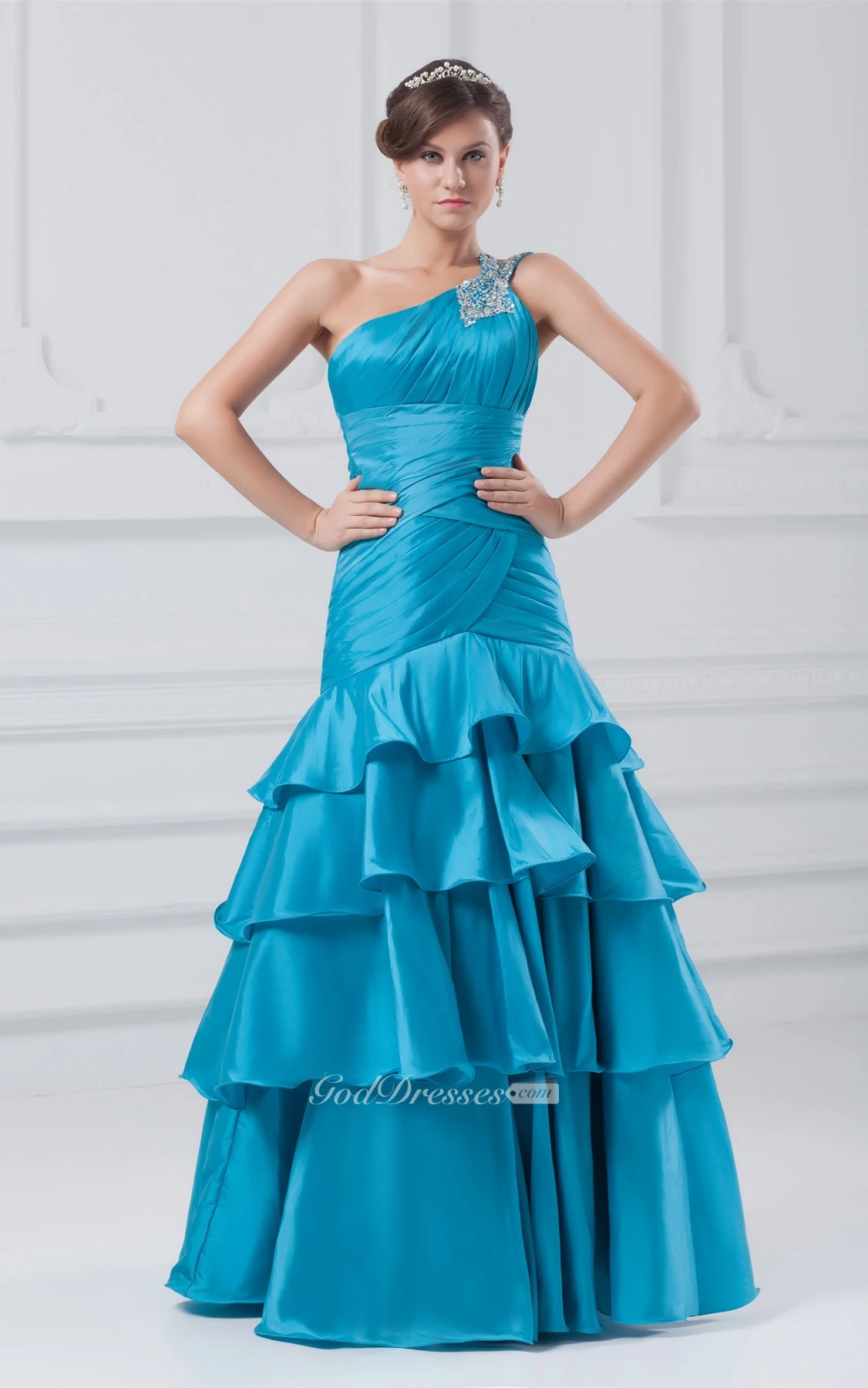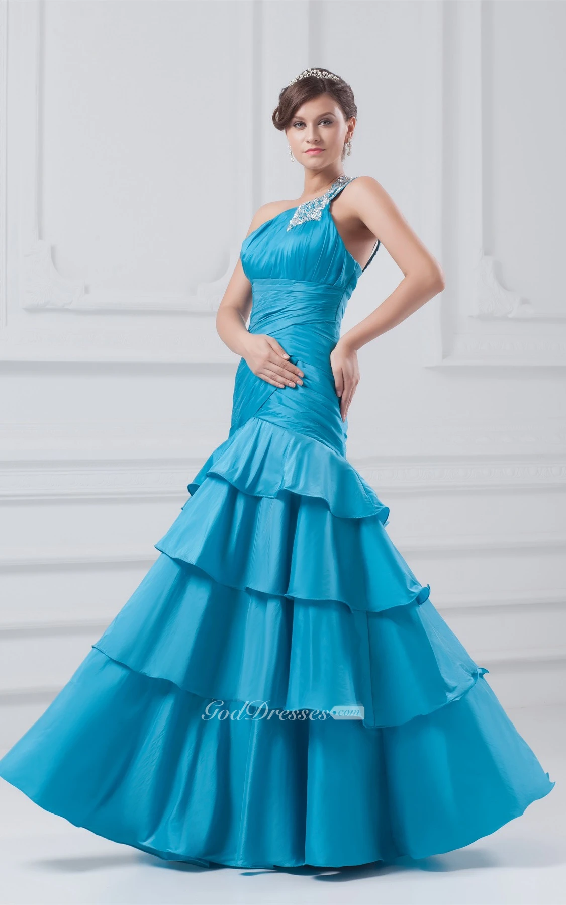 Gorgeous Sleeveless Sequined Taffeta One Shoulder Special Occasion Dresses