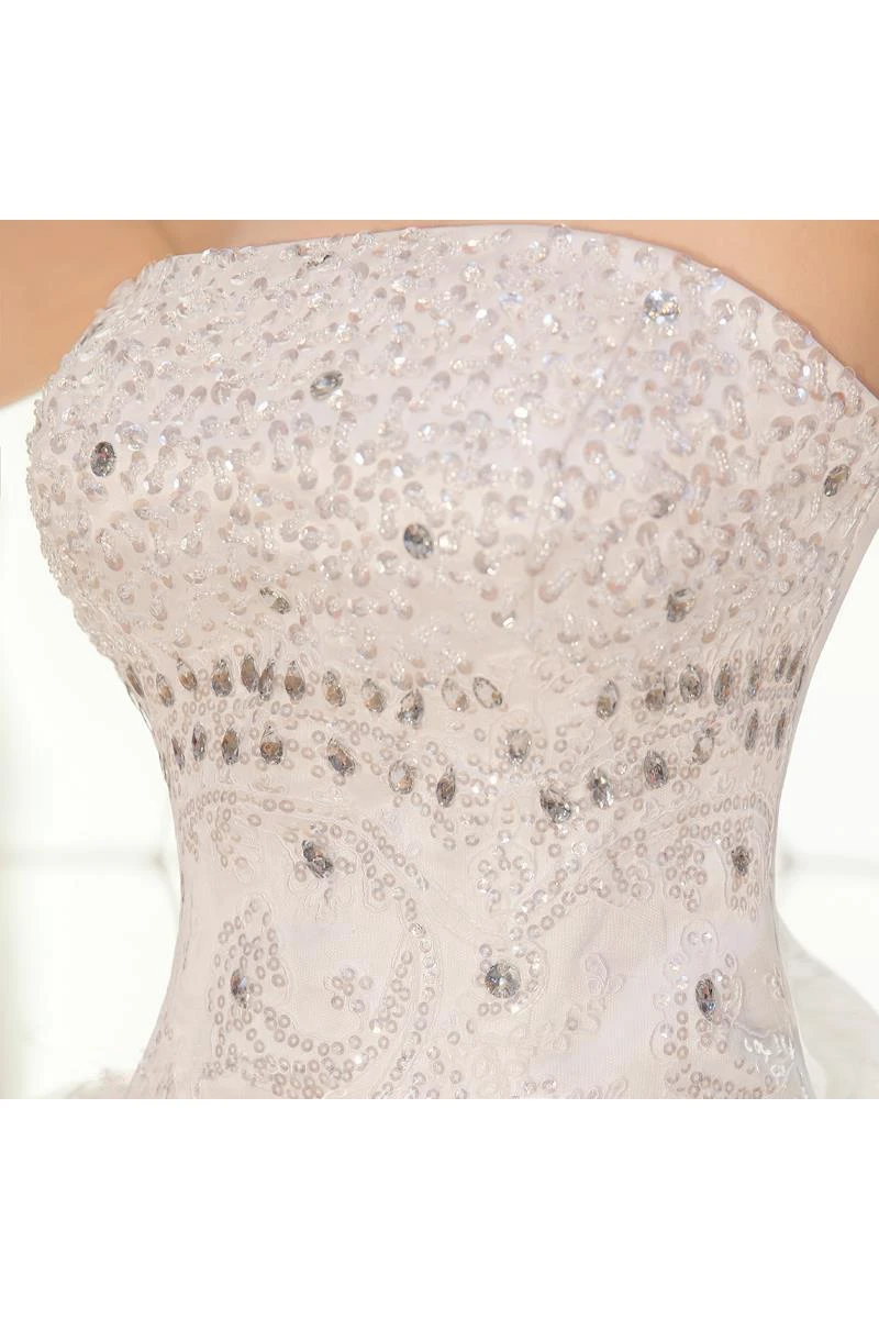 Gorgeous Strapless Beadings Crystal Wedding Dresses Lace-up Tulle Lace Bridal Gown