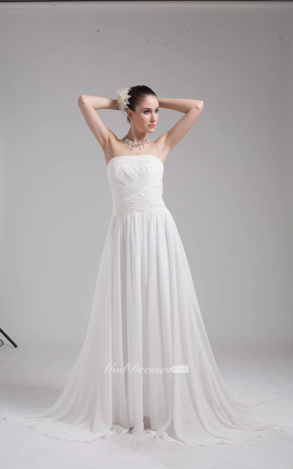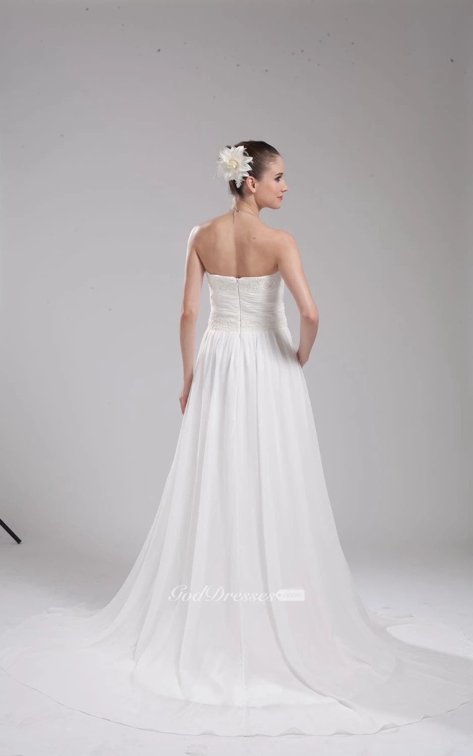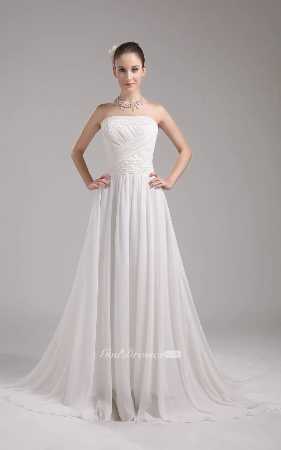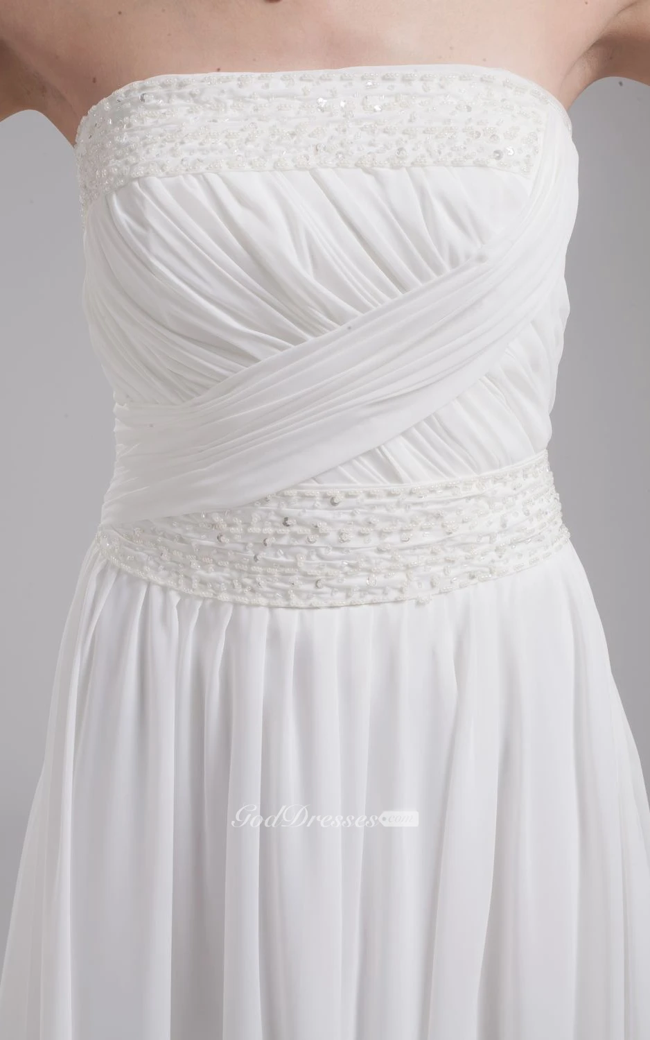 Gossamery Chiffon Beaded Dress With Ruching and Pleats