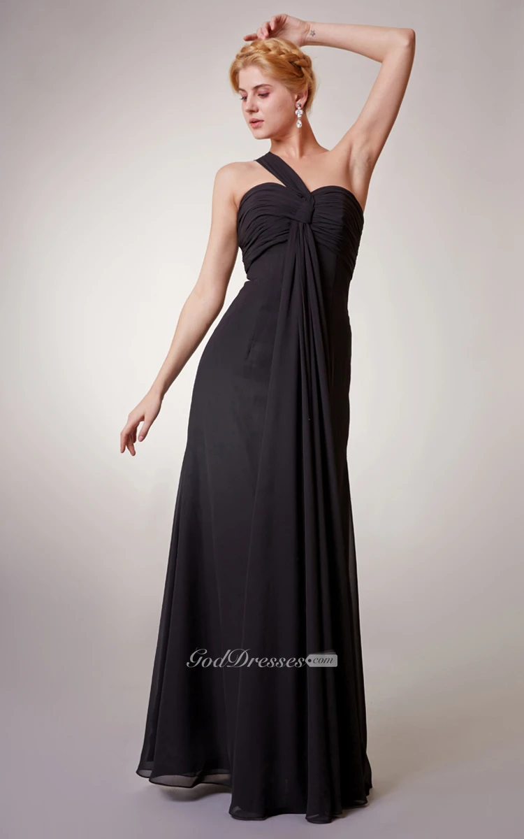 Gossamery One-shoulder Chiffon Dress With Empire Waist