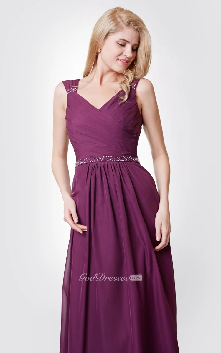 Graceful A-line Chiffon Long Dress With Beaded Waist