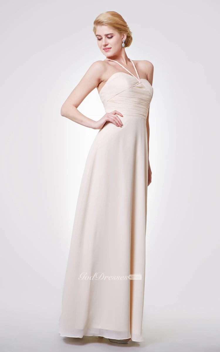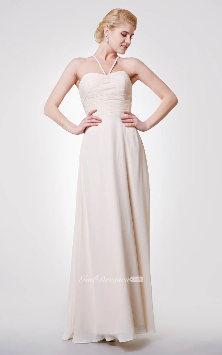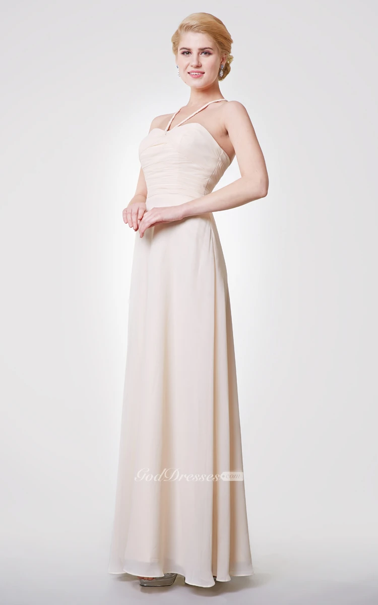 Graceful A-line Chiffon Long Dress With Ruched Waist