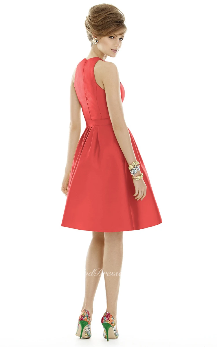 Graceful A-Line Short Sleeveless Satin Dress with Ruching and Belt