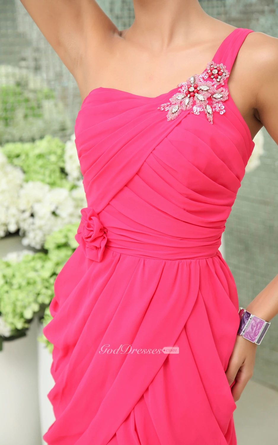 Graceful One-Shoulder Sheath Gown Floral Waist