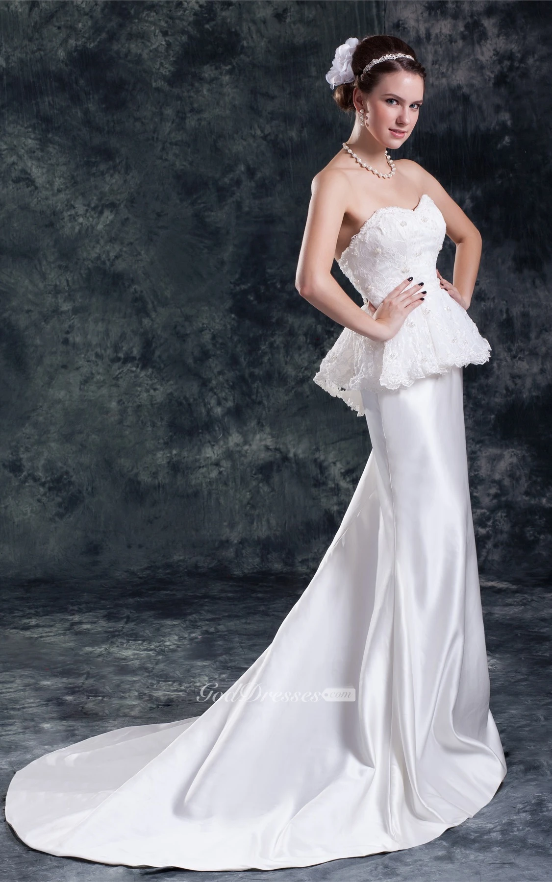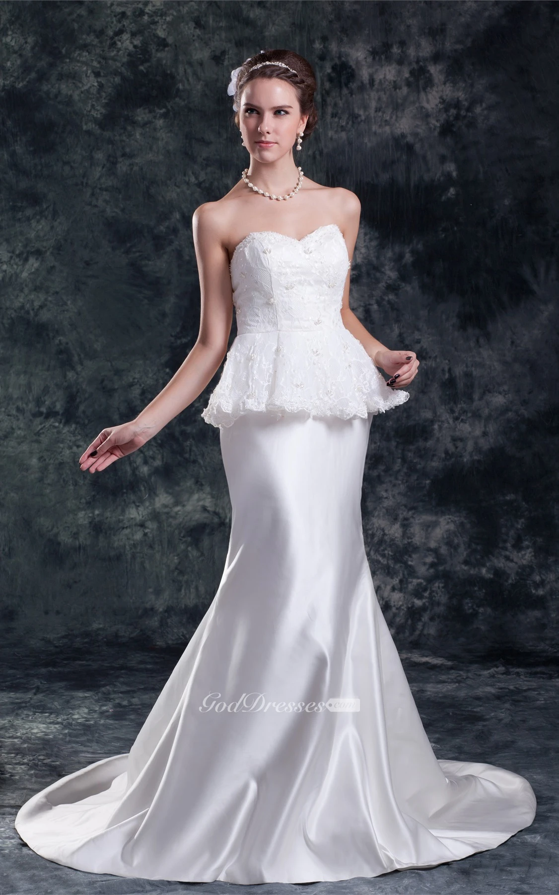 Graceful Sleeveless Satin Appliqued Sweetheart Trumpet Most Wedding Dresses