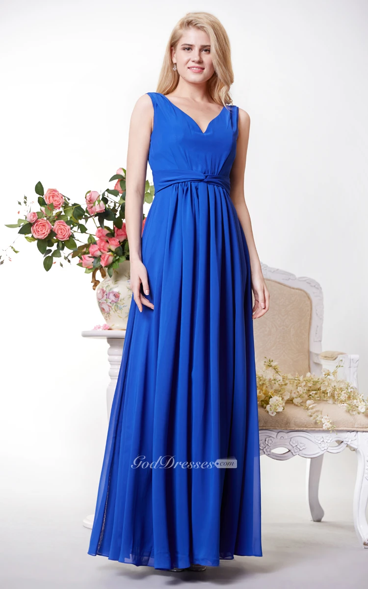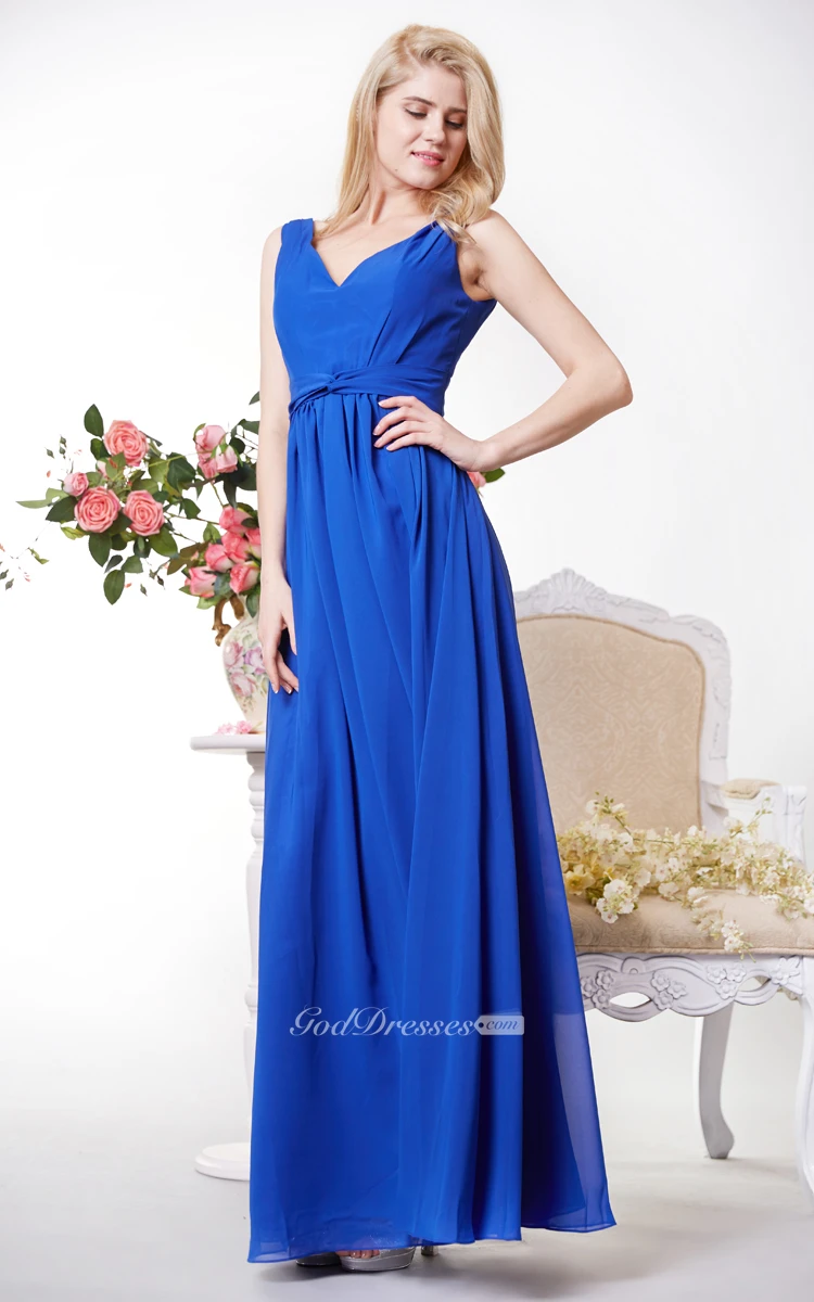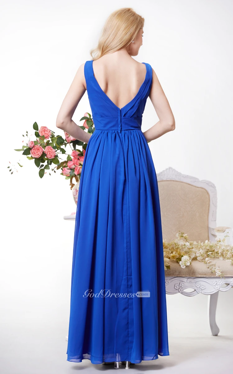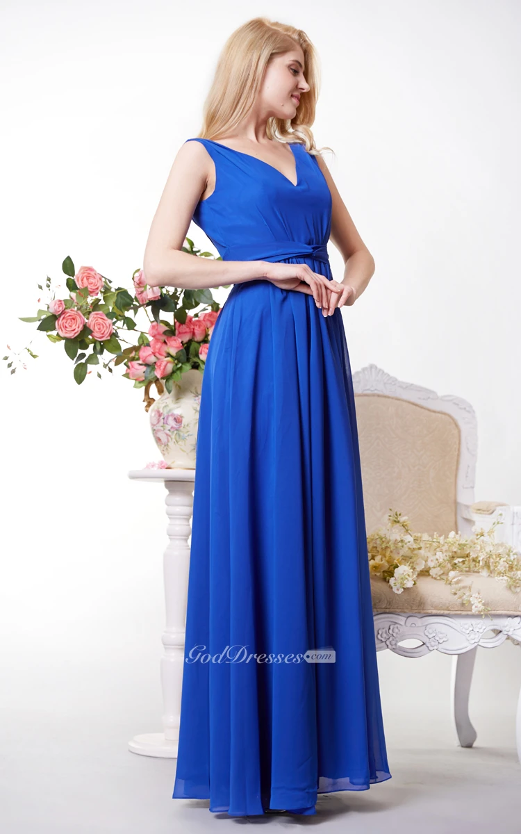 Graceful V-neck Chiffon A-line Gown With V-back