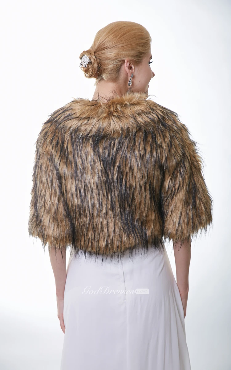 Half Sleeve Brown And Black Faux Fur Wedding Jacket