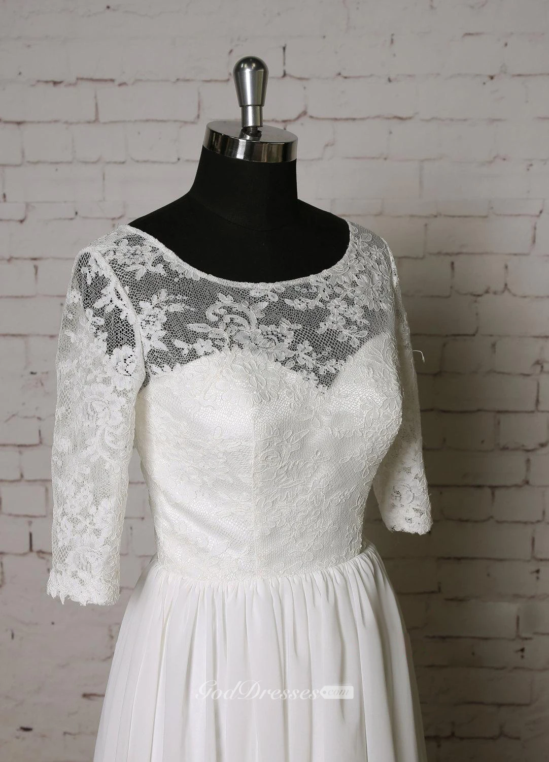 Half Sleeve Lace and Chiffon Scoop Neckline Dress With Illusion Top
