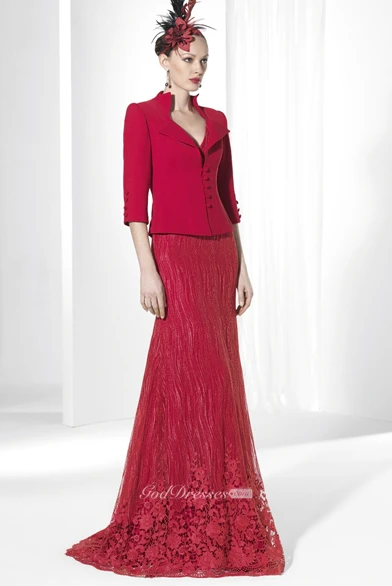 Half-Sleeve Long V-Neck Jacket Prom Dress With Appliques