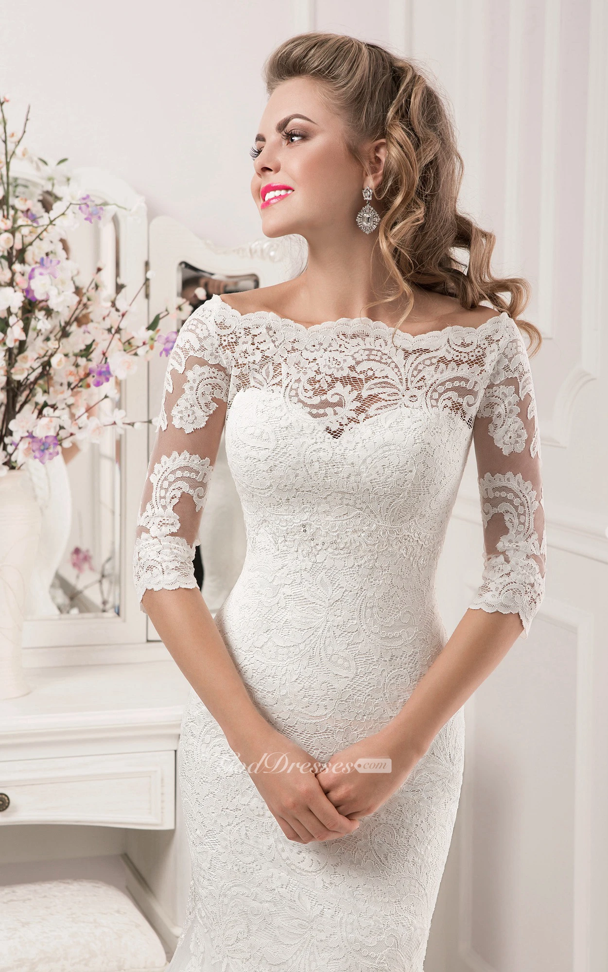 Half Sleeve Scalloped Neckline Lace Mermaid Dress