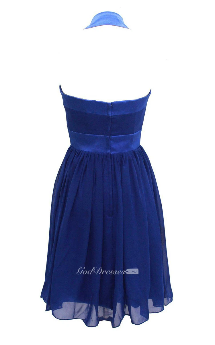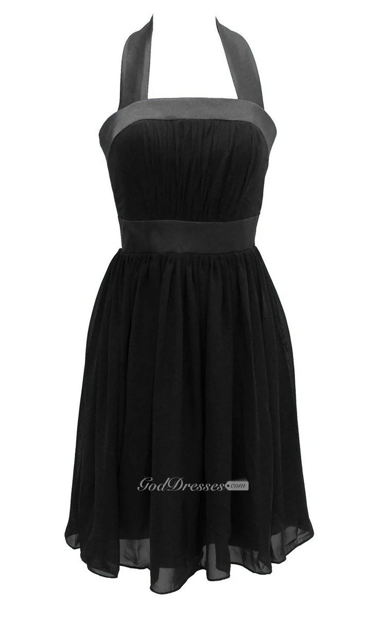 Halter A-line Chiffon Dress With Pleats