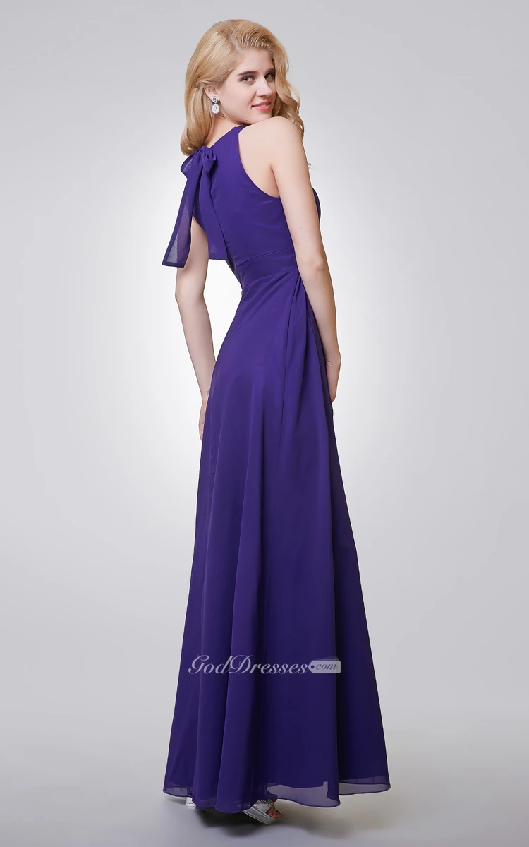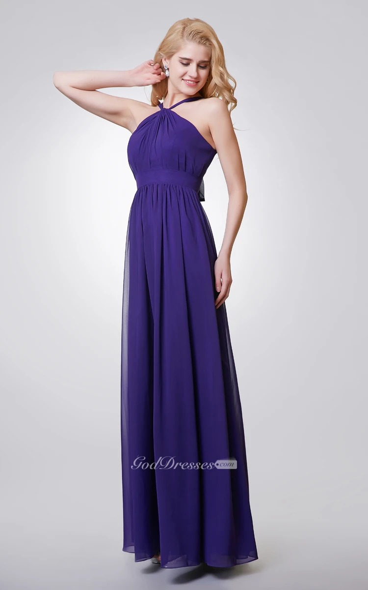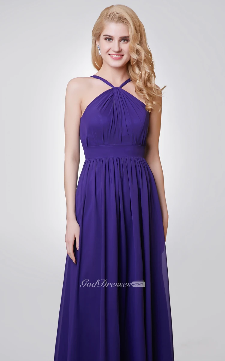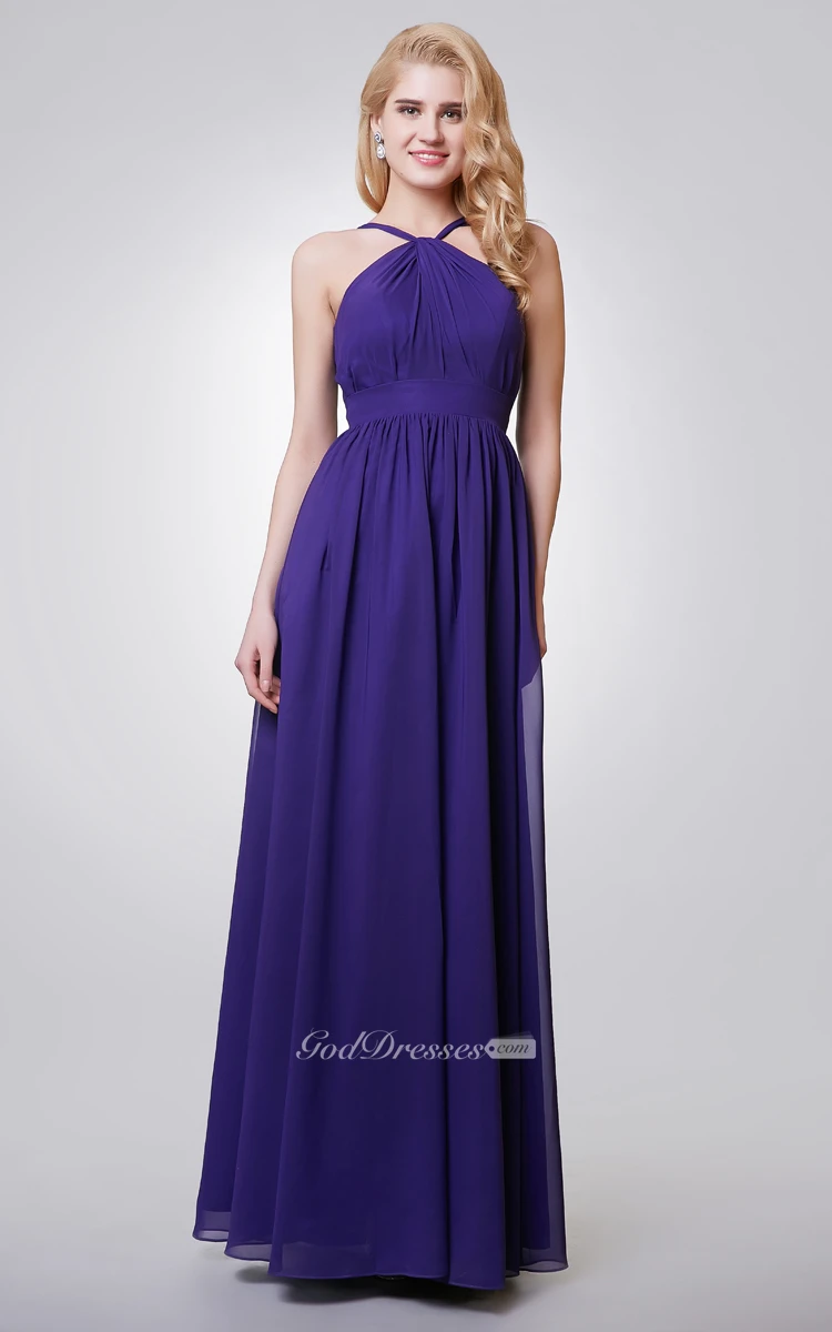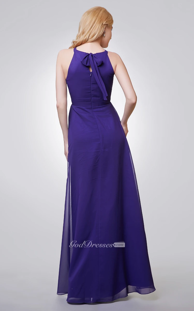 Halter A-line Long Chiffon Dress With Key-hole