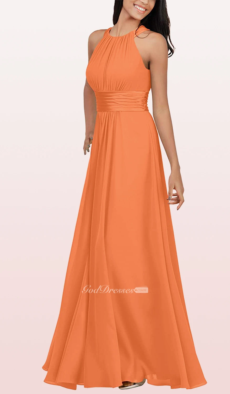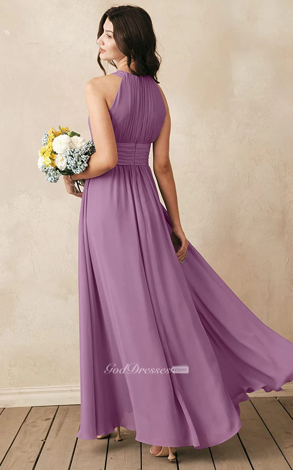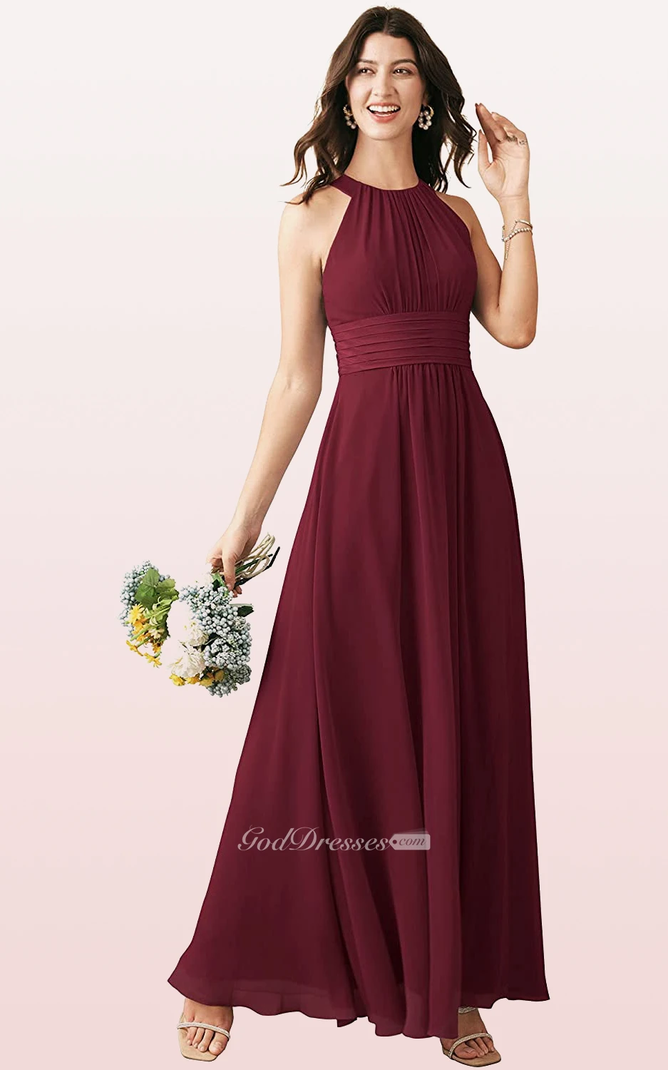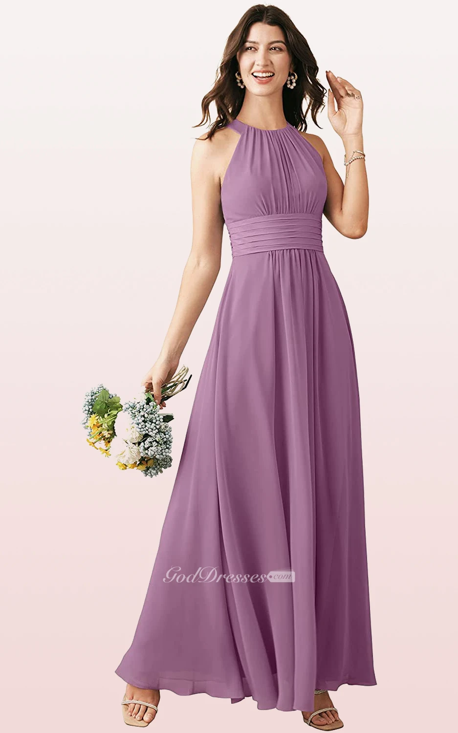 Halter A Line Sleeveless Ankle-length Chiffon Bridesmaid Dress With Ruching