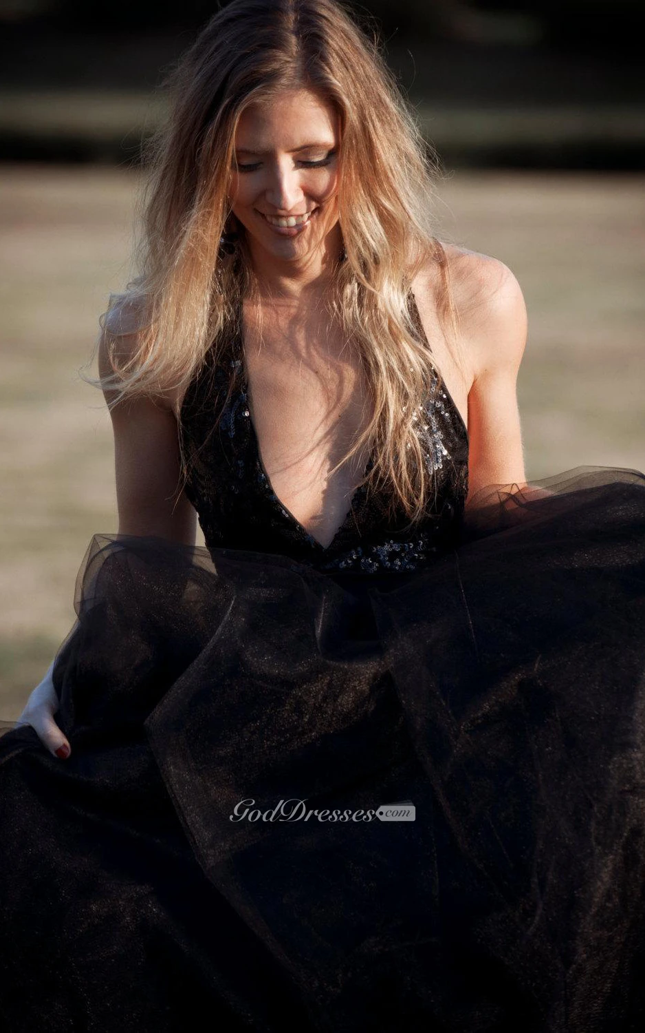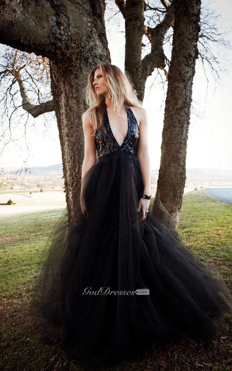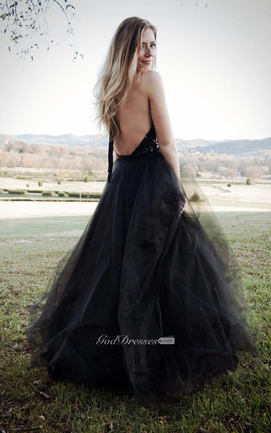 Halter Backless Tulle Dress With Sequins