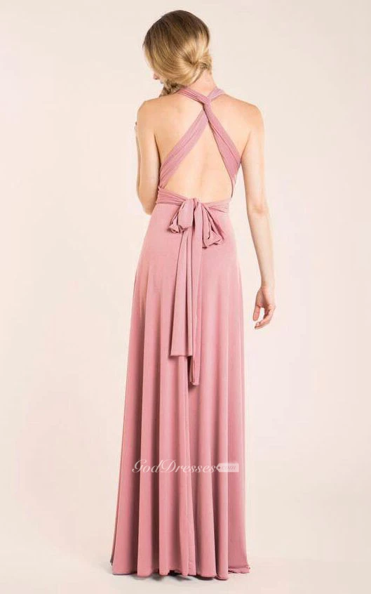 Halter Empire Pleated A-line Jersey Long Dress With Criss-cross Back