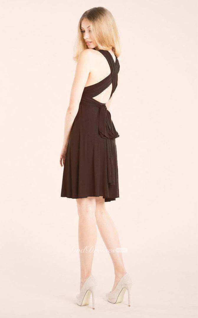 Halter Empire Pleated A-line Knee Length Dress Criss Cross Back