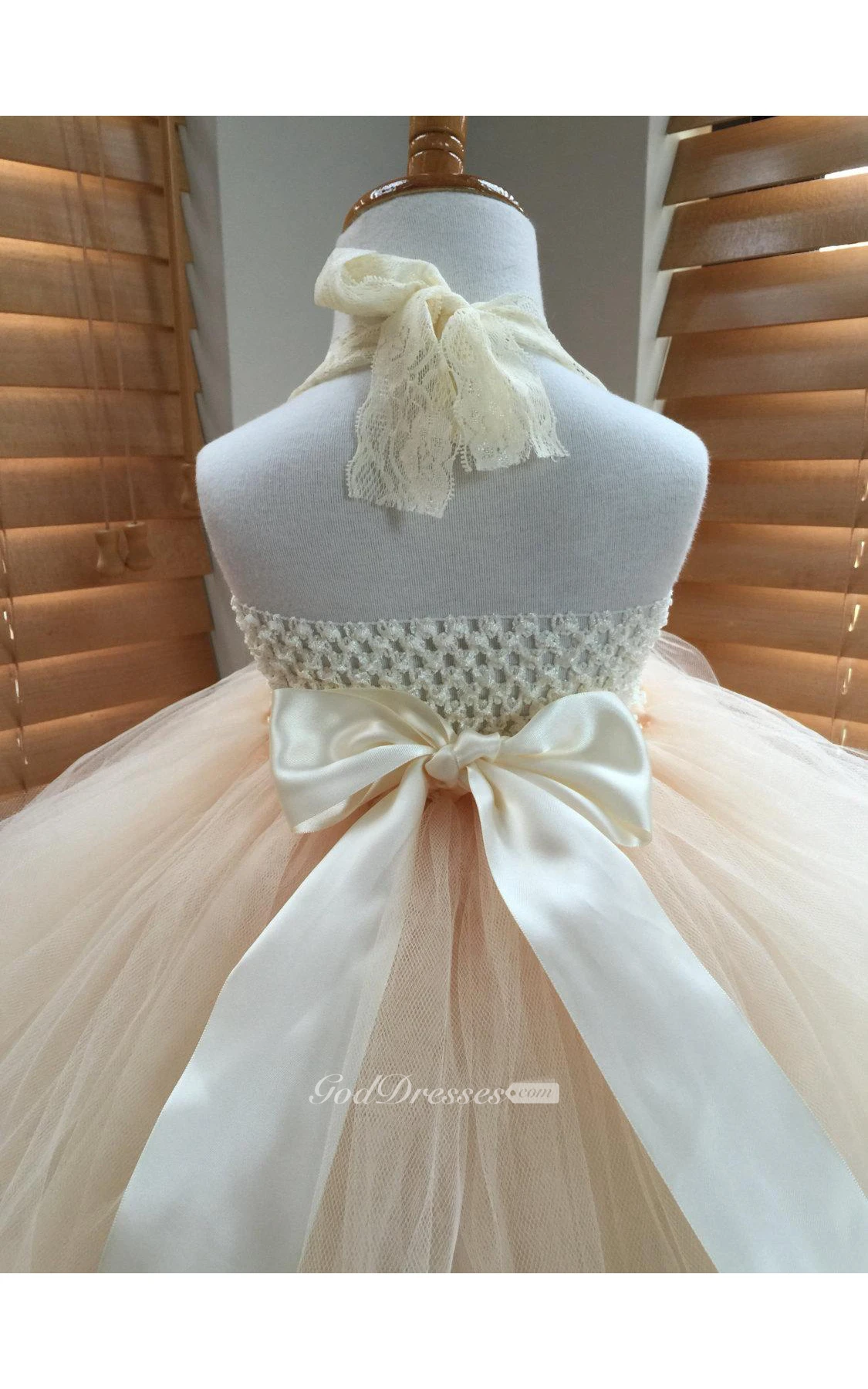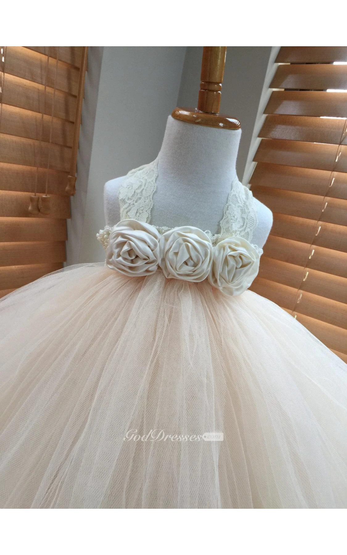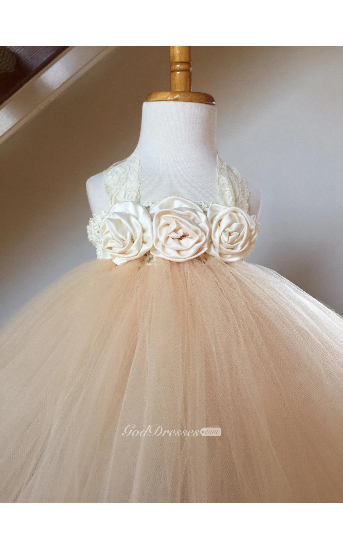 Halter Floral Bodice Empire Tulle Ball Gown With Pleats