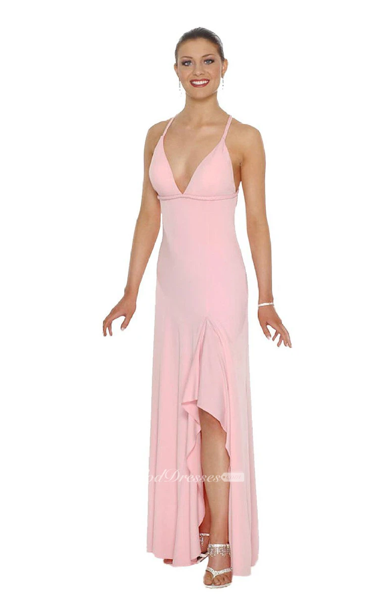 Halter Jersey Gown With Front Slit and Ruffles