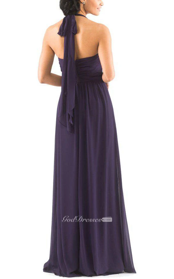 Halter Long Chiffon Bridesmaid Dress