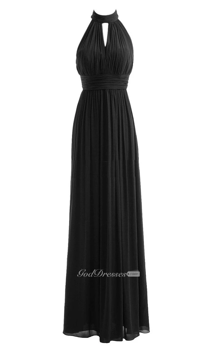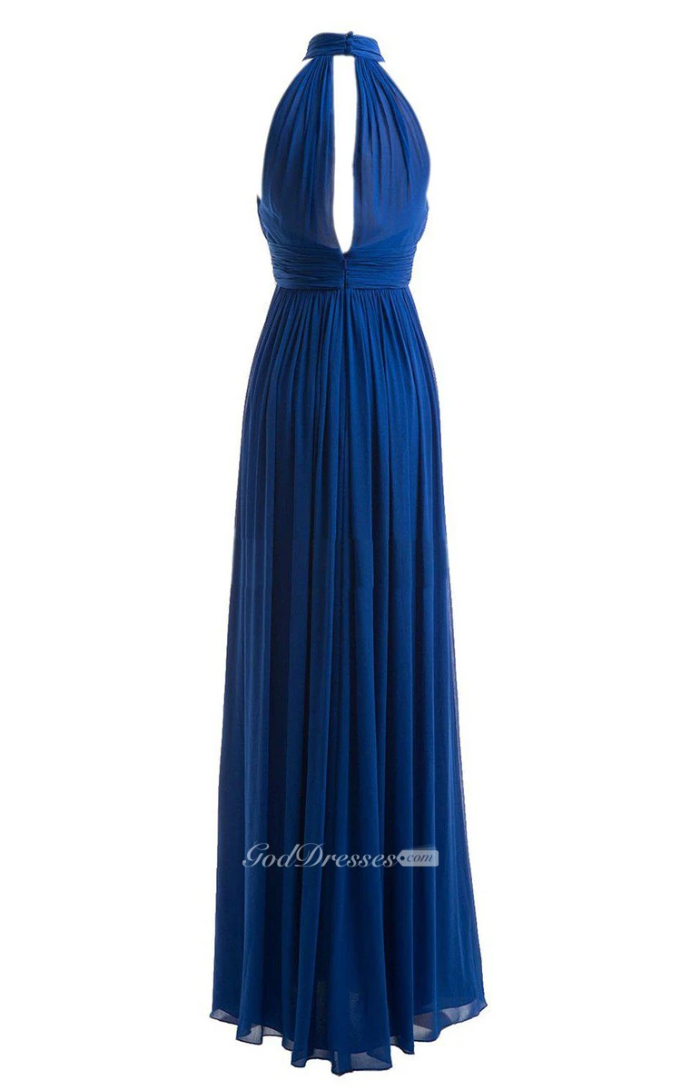 Halter Long Chiffon Gown With Keyhole Detail