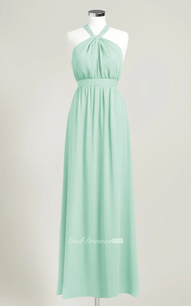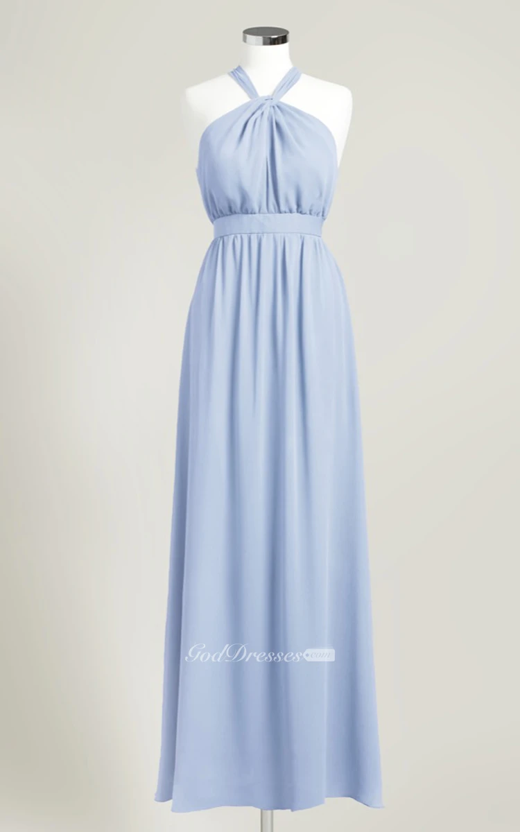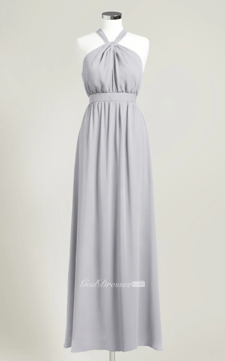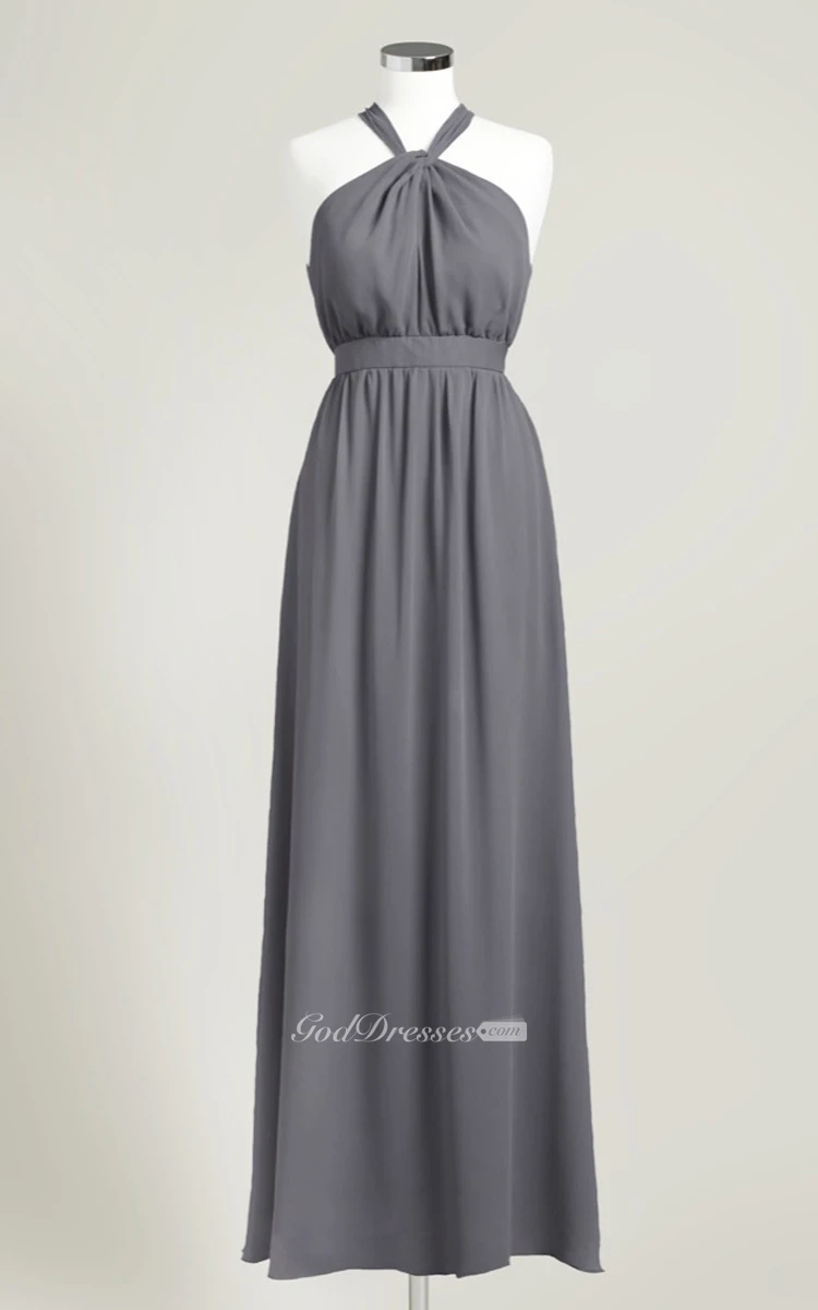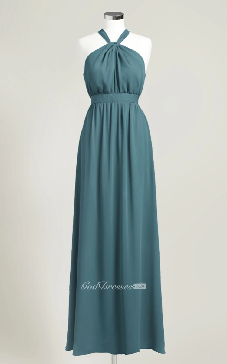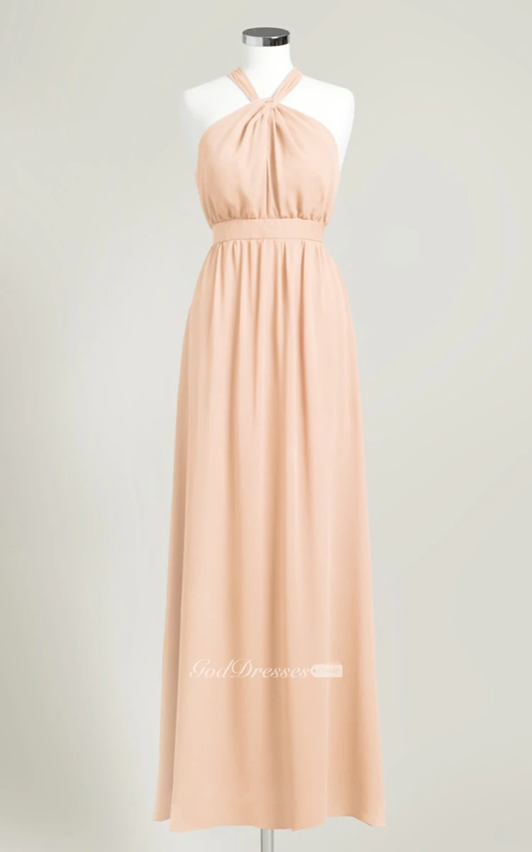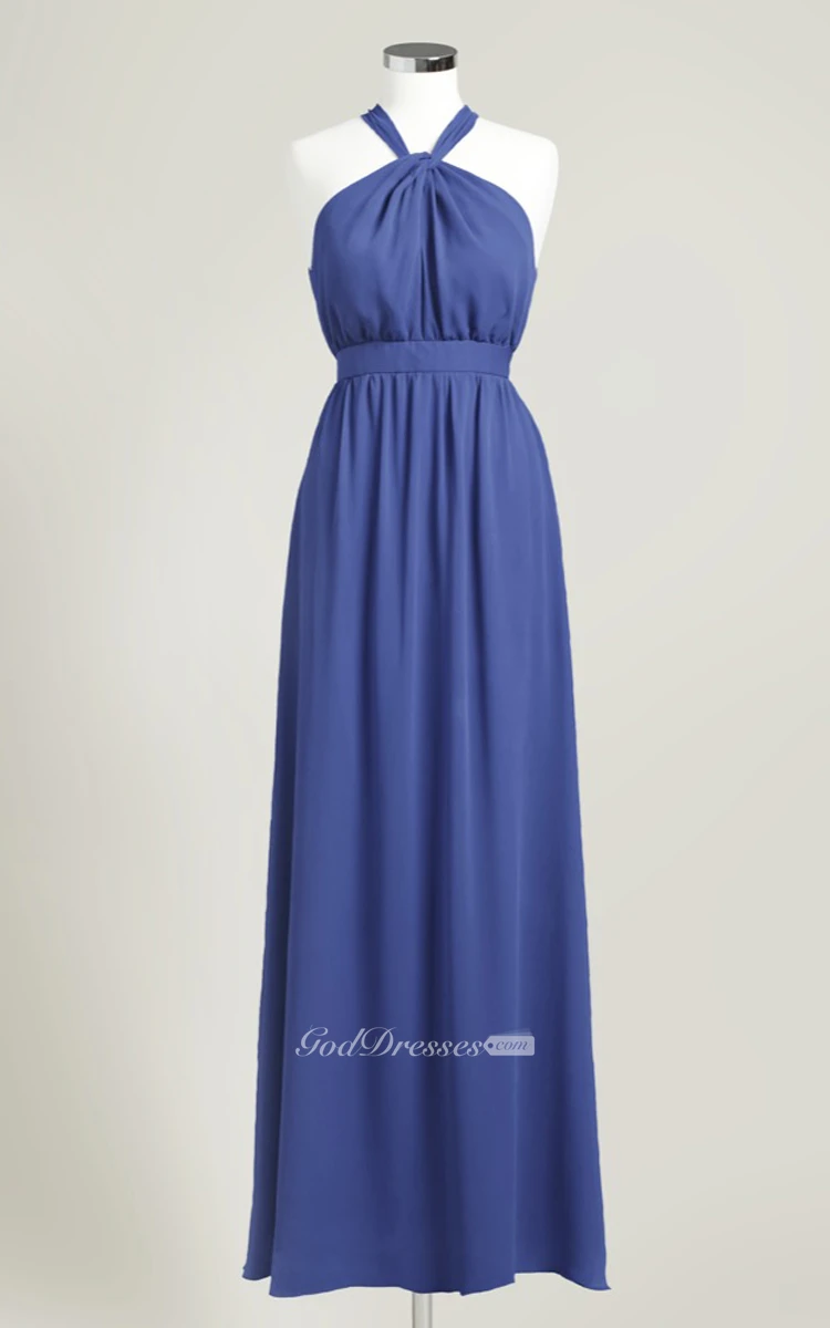 Halter-Neck Unique Floor-Length Chiffon Dress