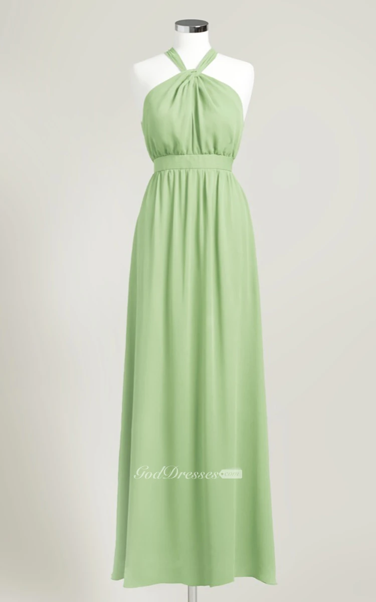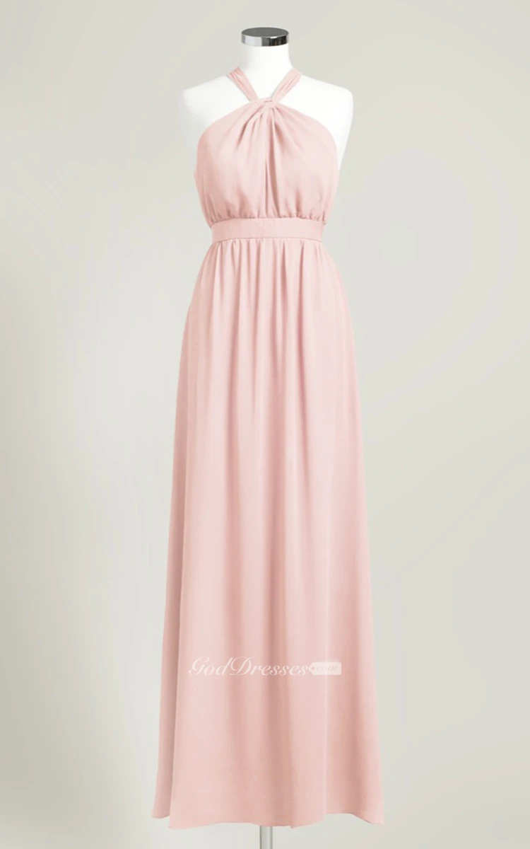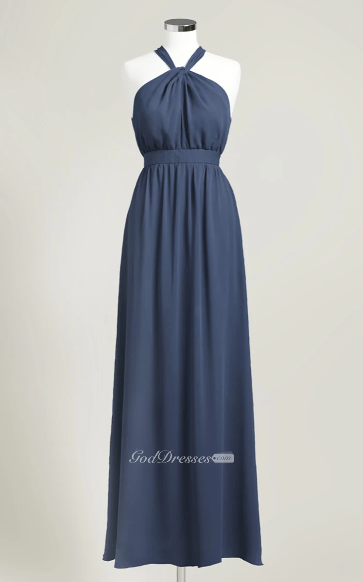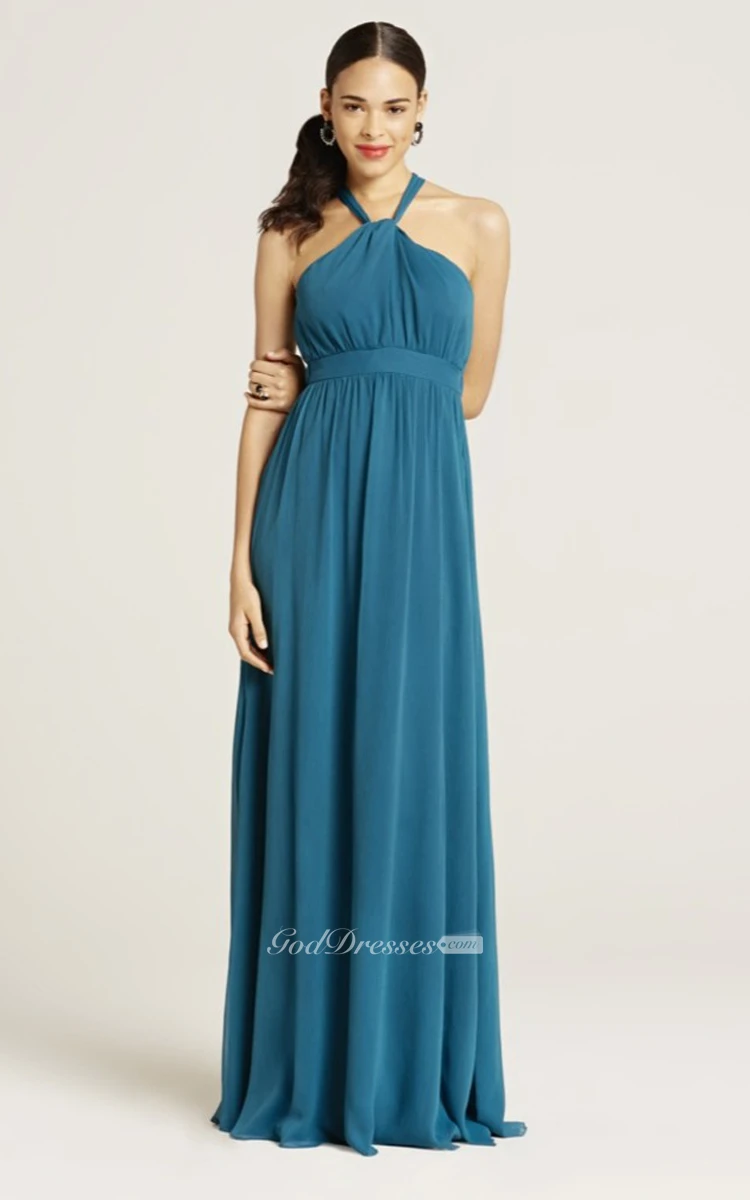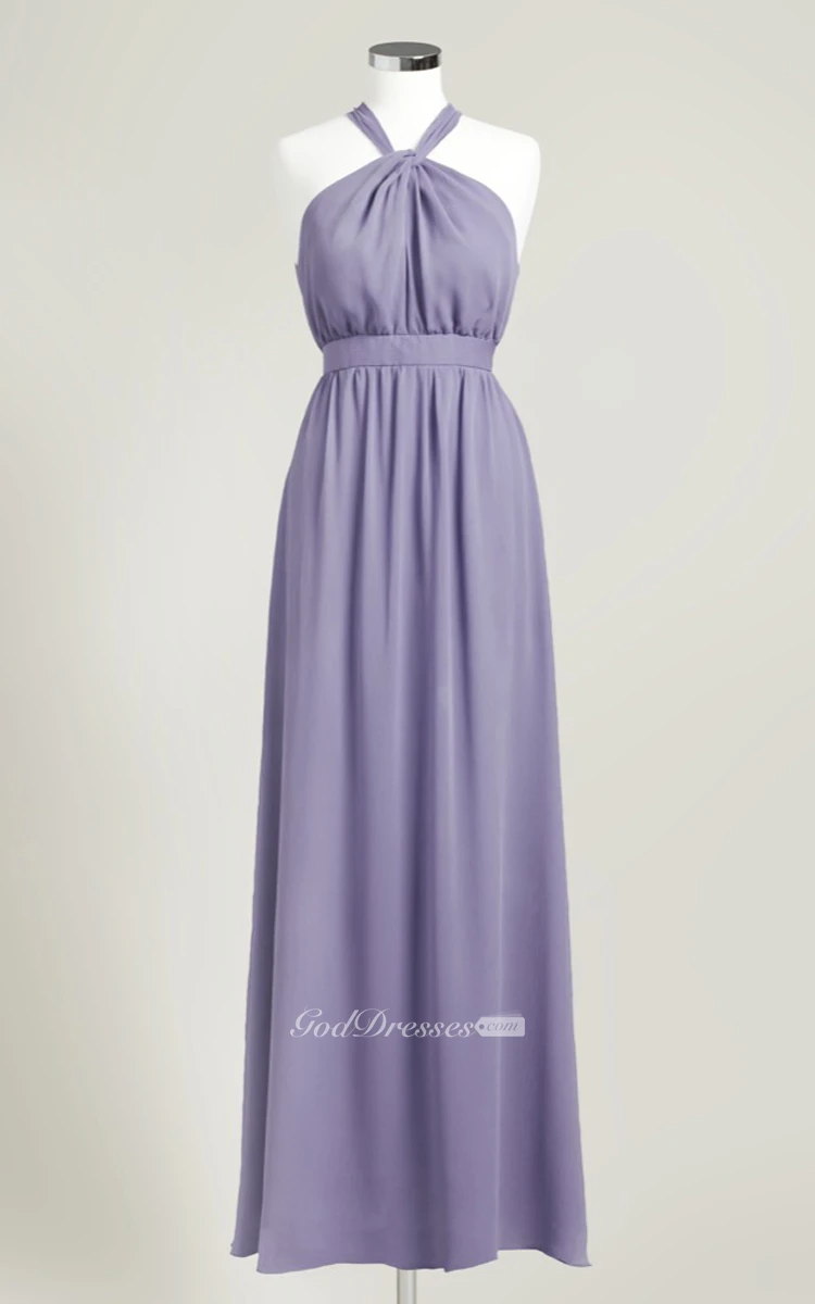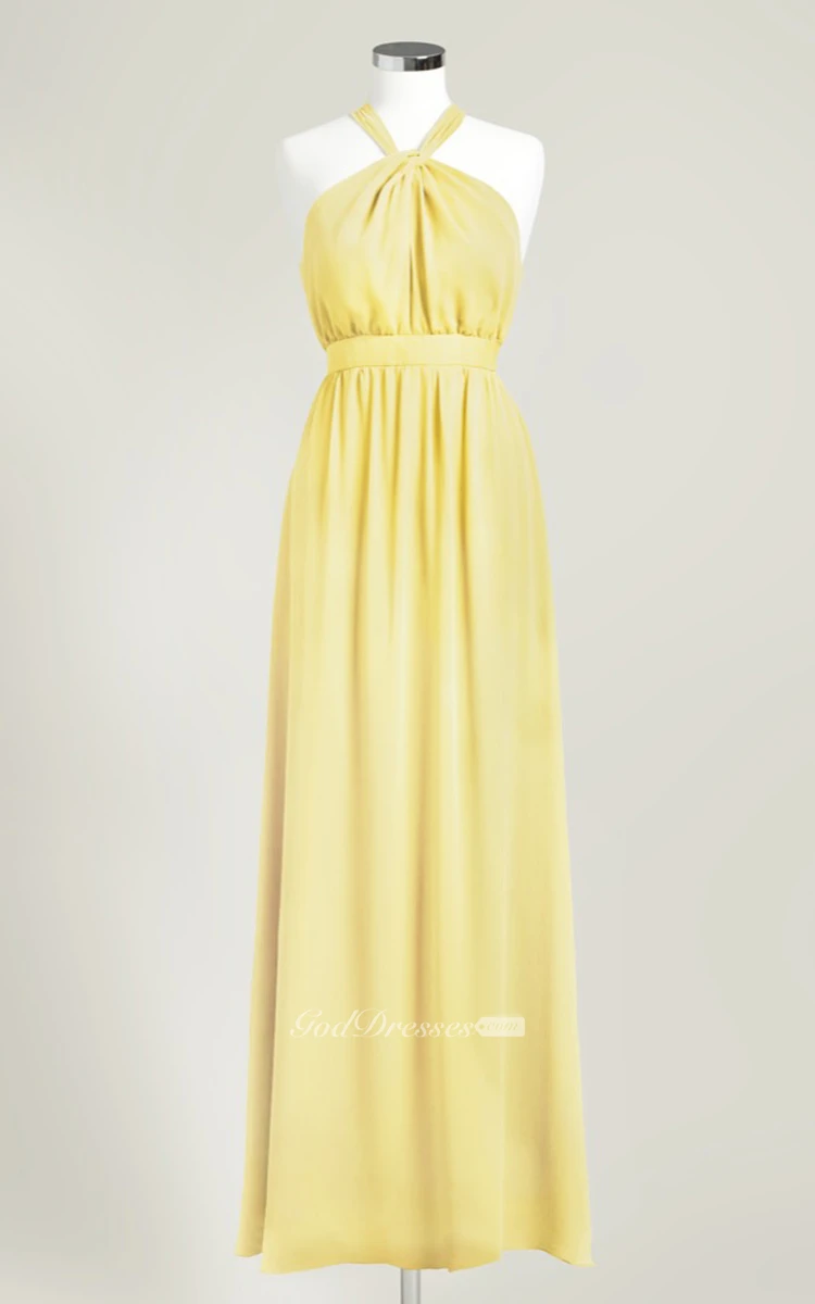 Halter-Neck Unique Floor-Length Chiffon Dress