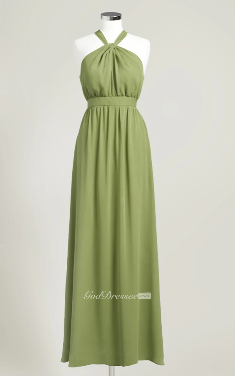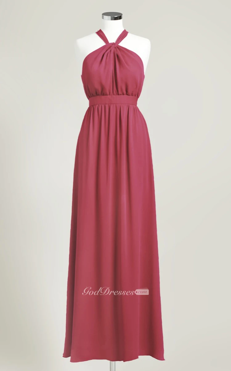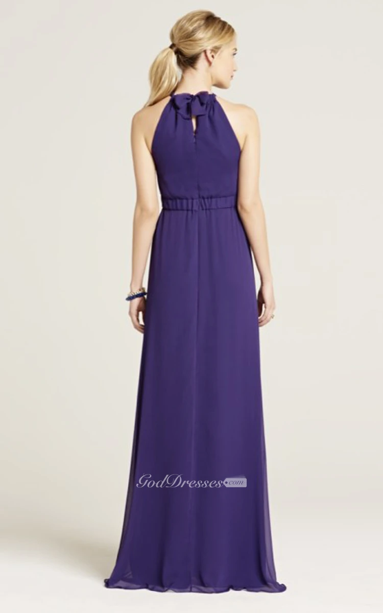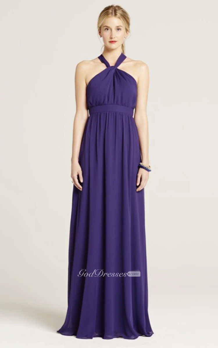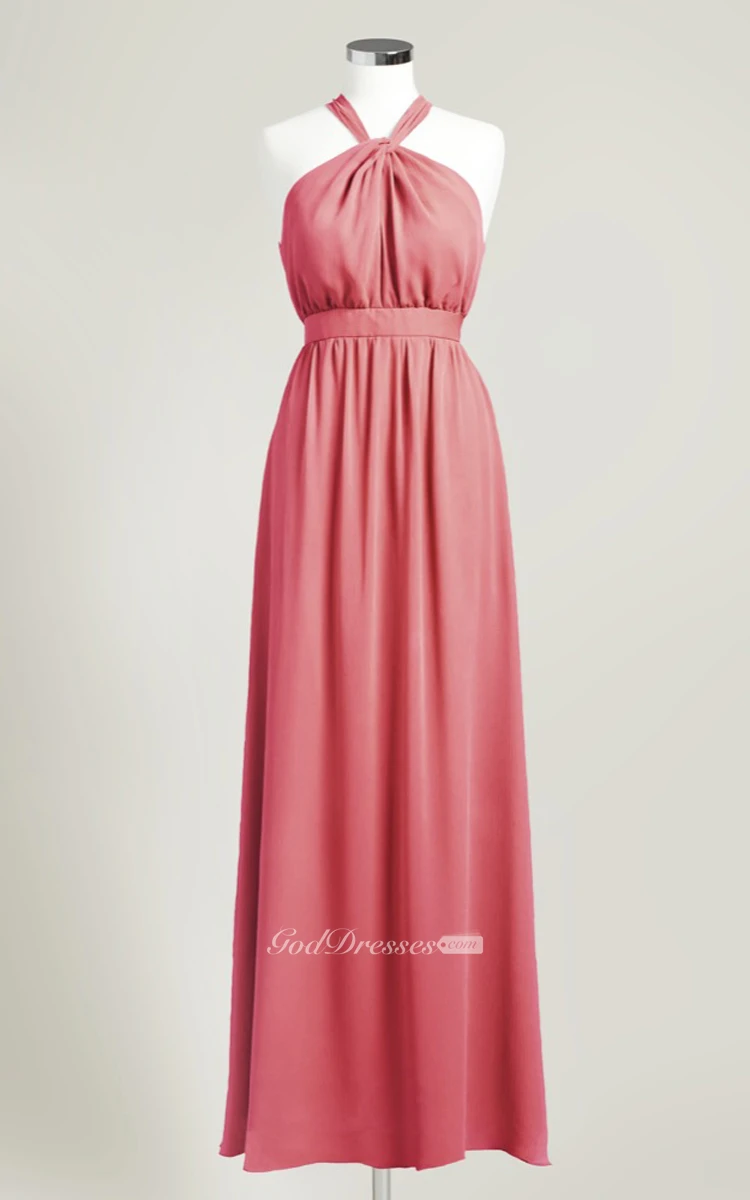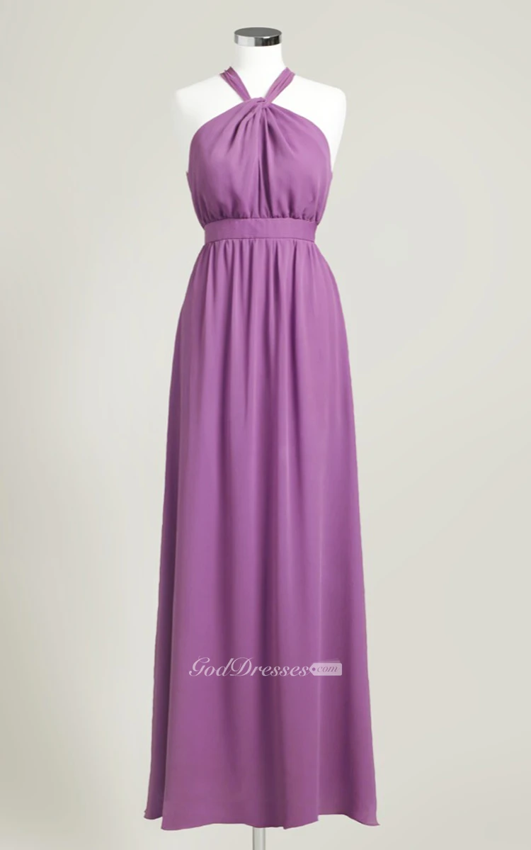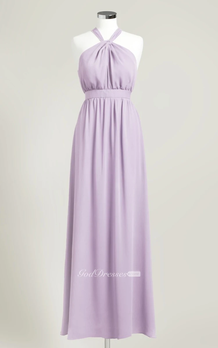 Halter-Neck Unique Floor-Length Chiffon Dress