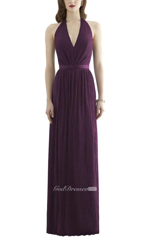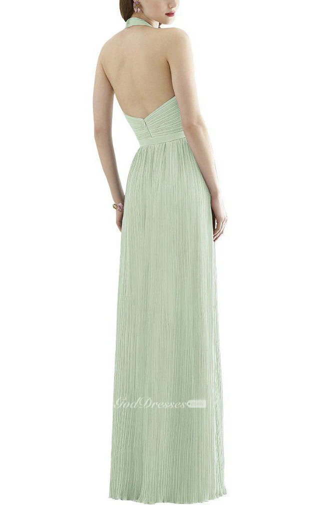 Halter Ruched Long Bridesmaid Dress with Low Back