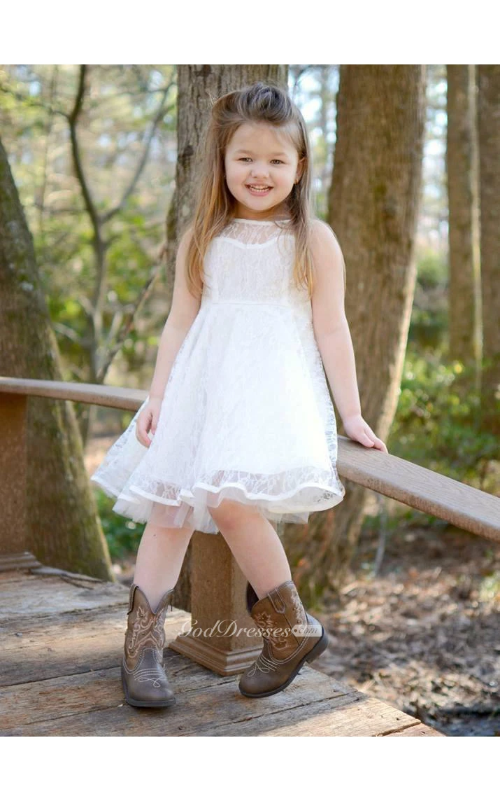 High Illusion Neck Sleeveless Pleated A-line Lace Short Dress