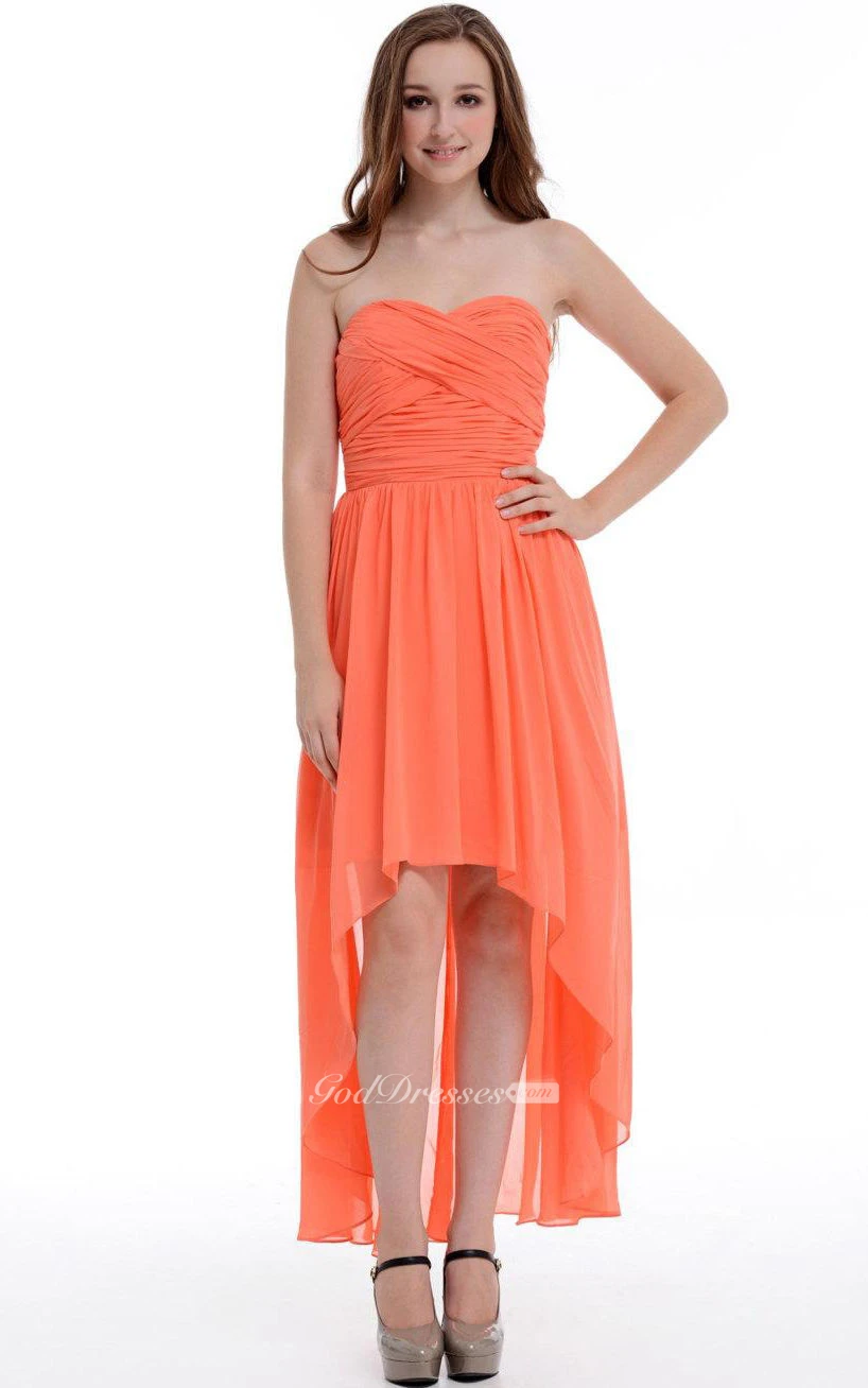 High-low Asymmetrical Sweetheart Chiffon Dress With Ruffles