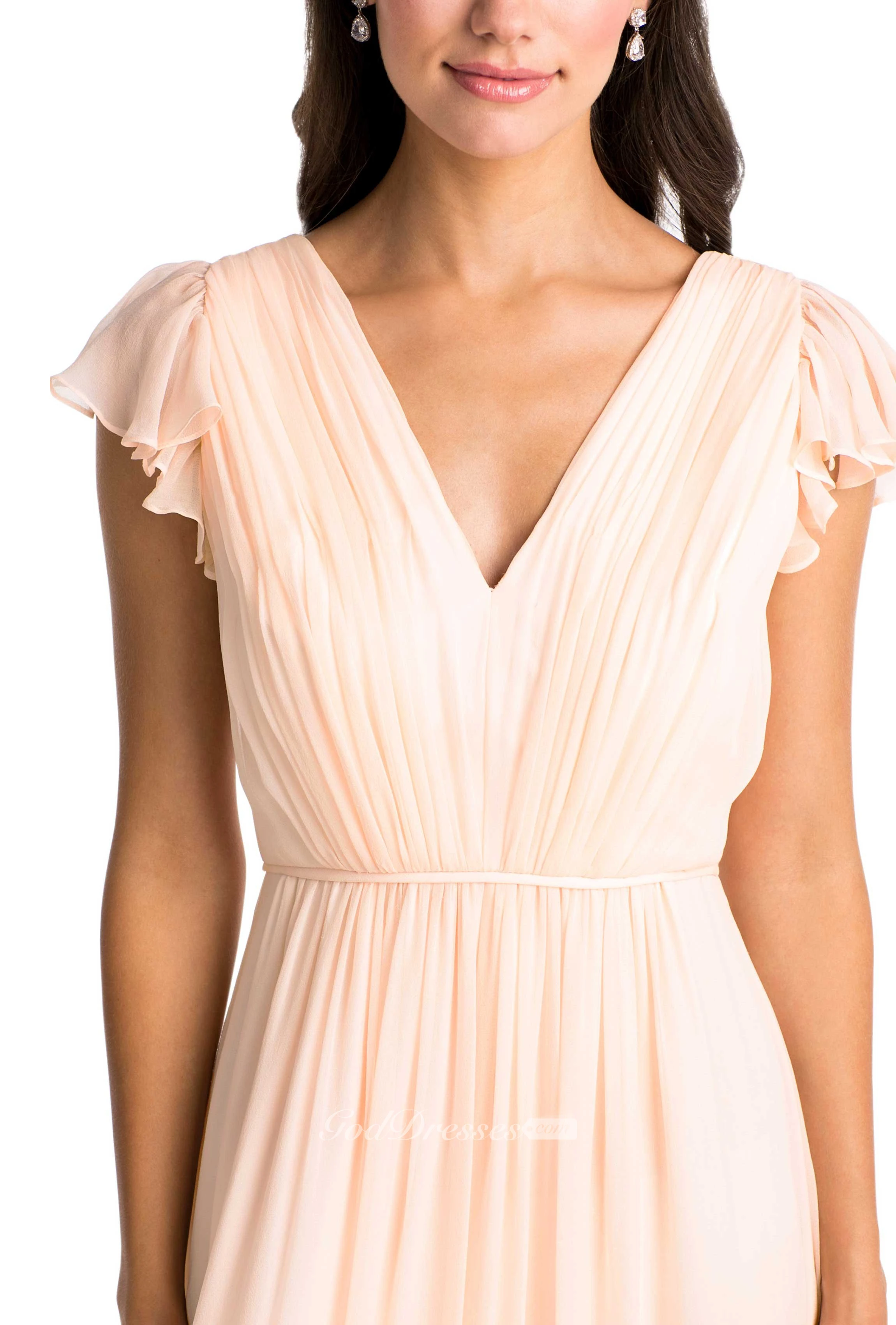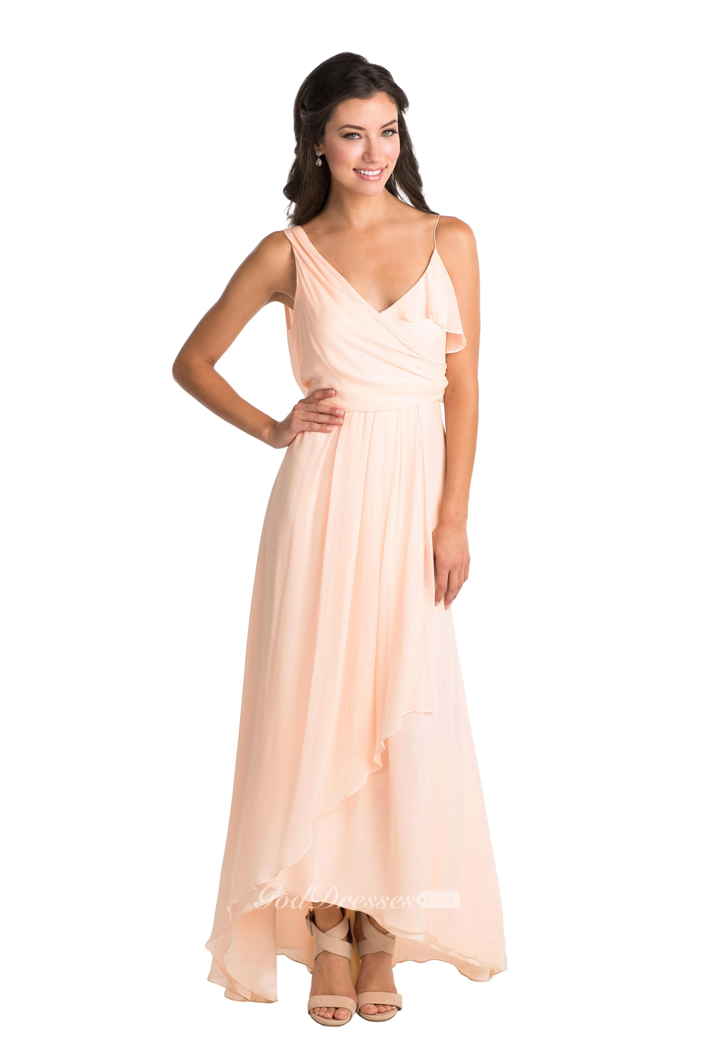 High-Low Cap Sleeve Ruched V-Neck Chiffon Muti-Color Convertible Bridesmaid Dress