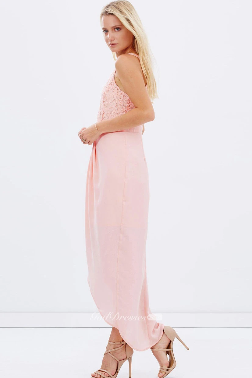 High-Low Lace Scoop Neck Sleeveless Chiffon Bridesmaid Dress