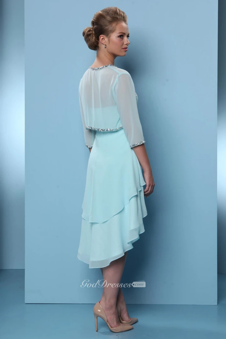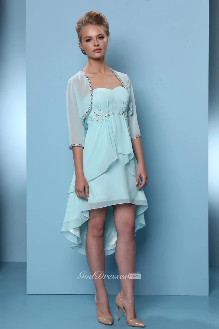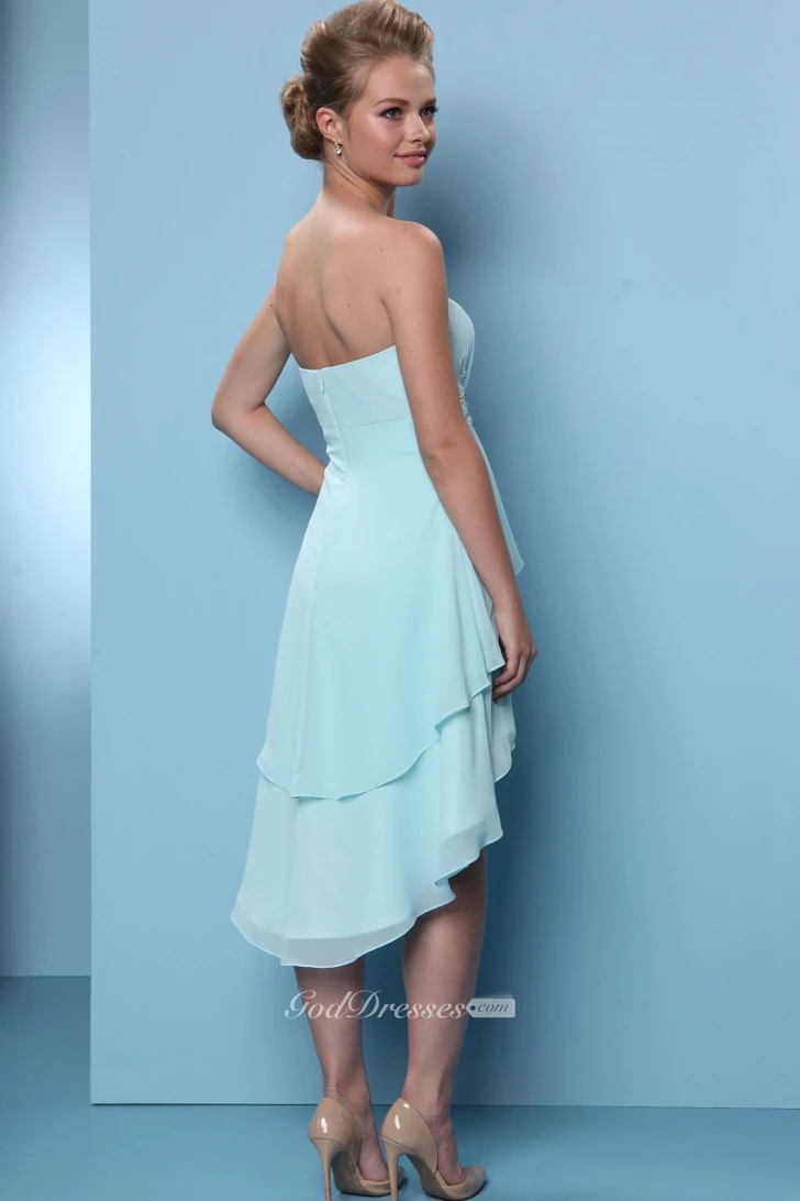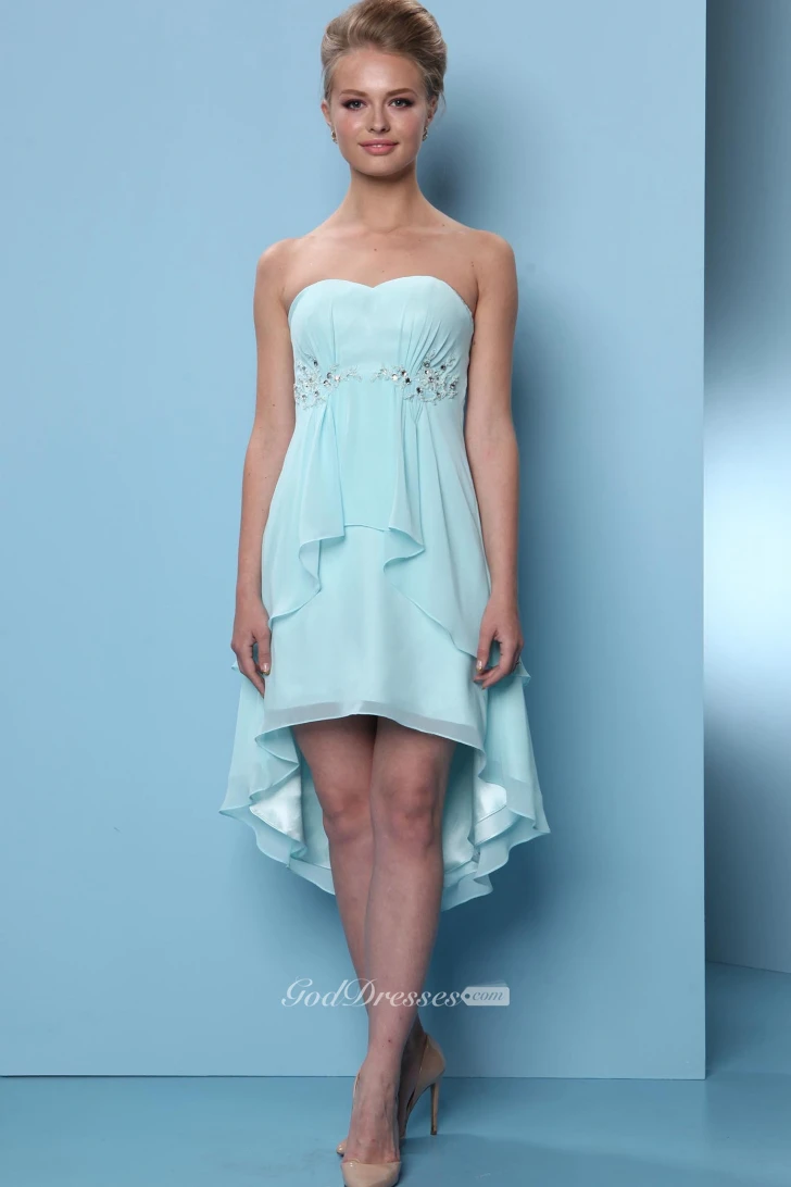 High-Low Sleeveless Sweetheart Beaded Chiffon Bridesmaid Dress With Draping