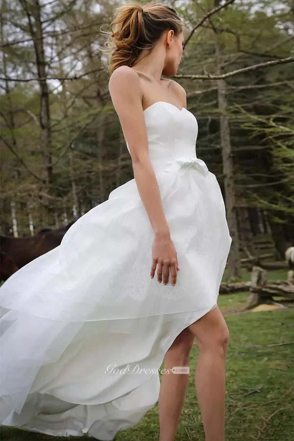 High Low Sweetheart Sleeveless Organza Applique Wedding Dress