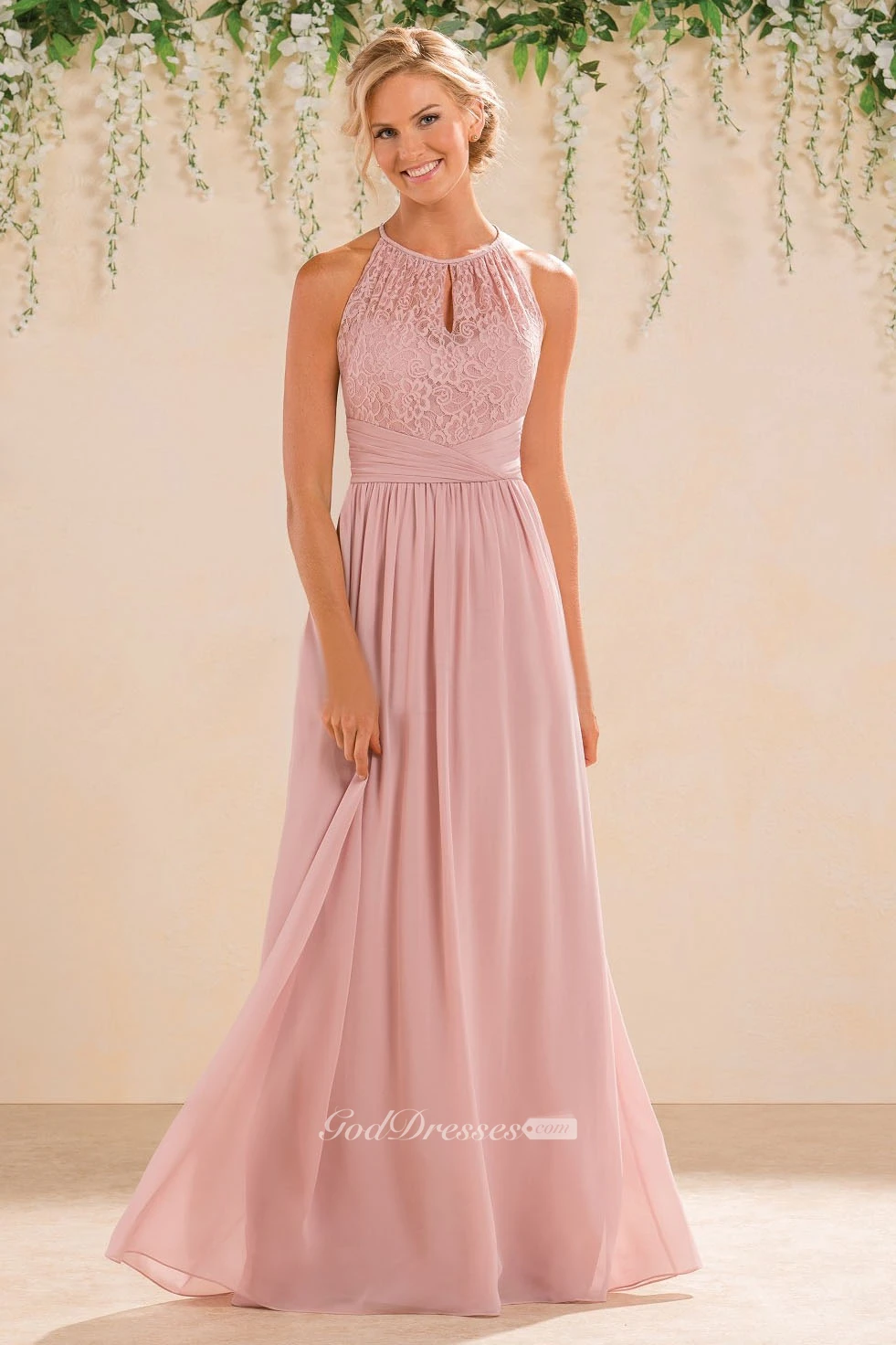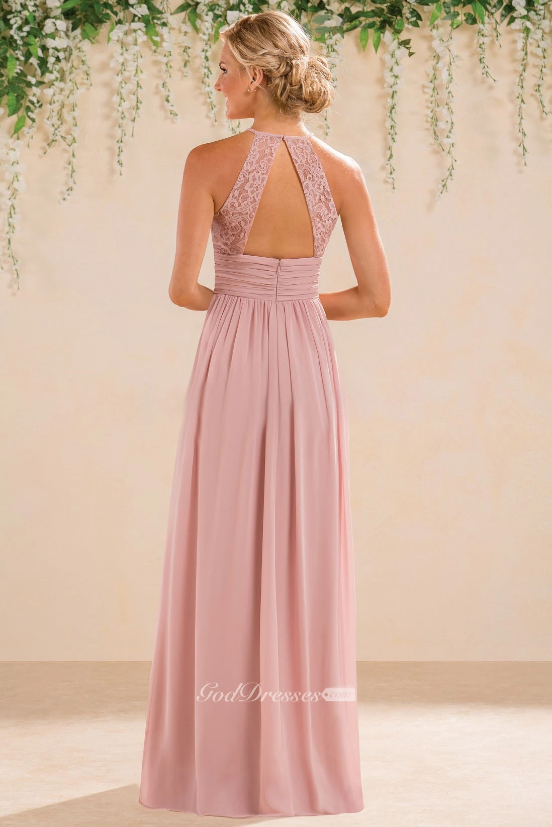 High-Neck A-Line Bridesmaid Dress With Lace Detail And Keyhole Back