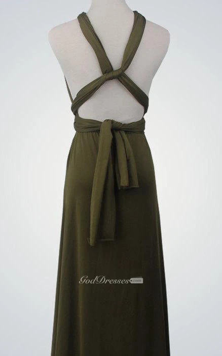 High Neck A-line Jersey Floor Length Dress With Back Cross Straps