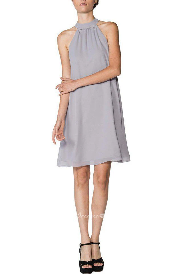 High-neck A-line Short Chiffon Dress