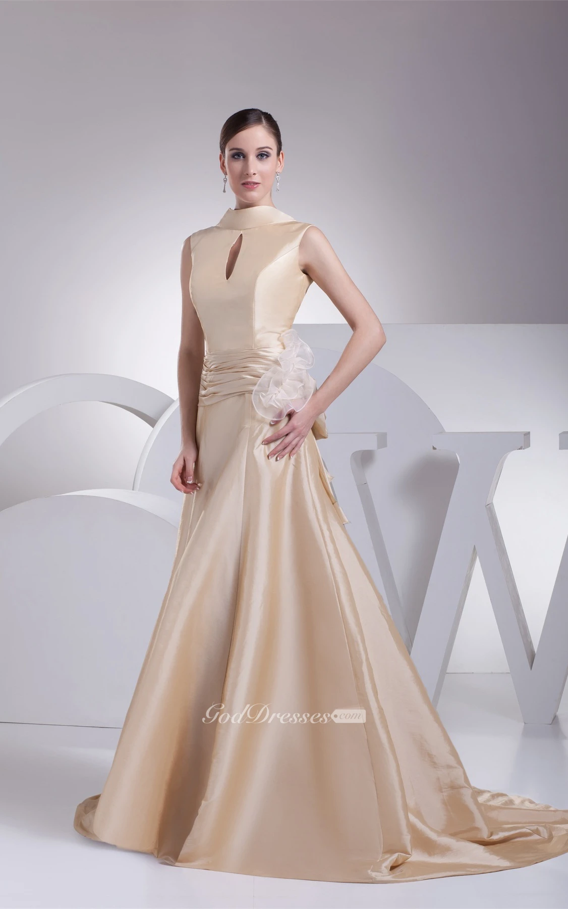 High-Neck A-Line Sleeveless Keyhole and Dress With Flower