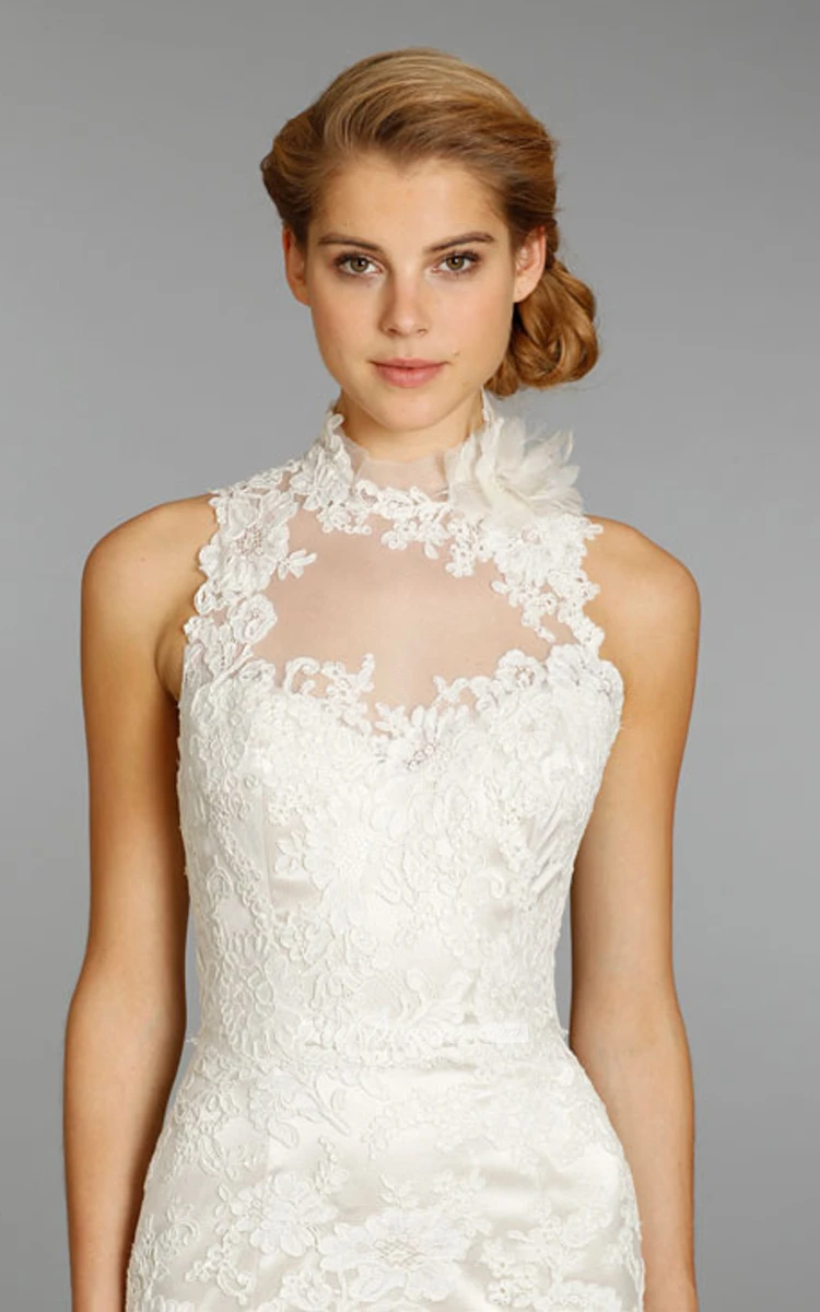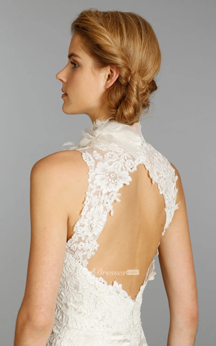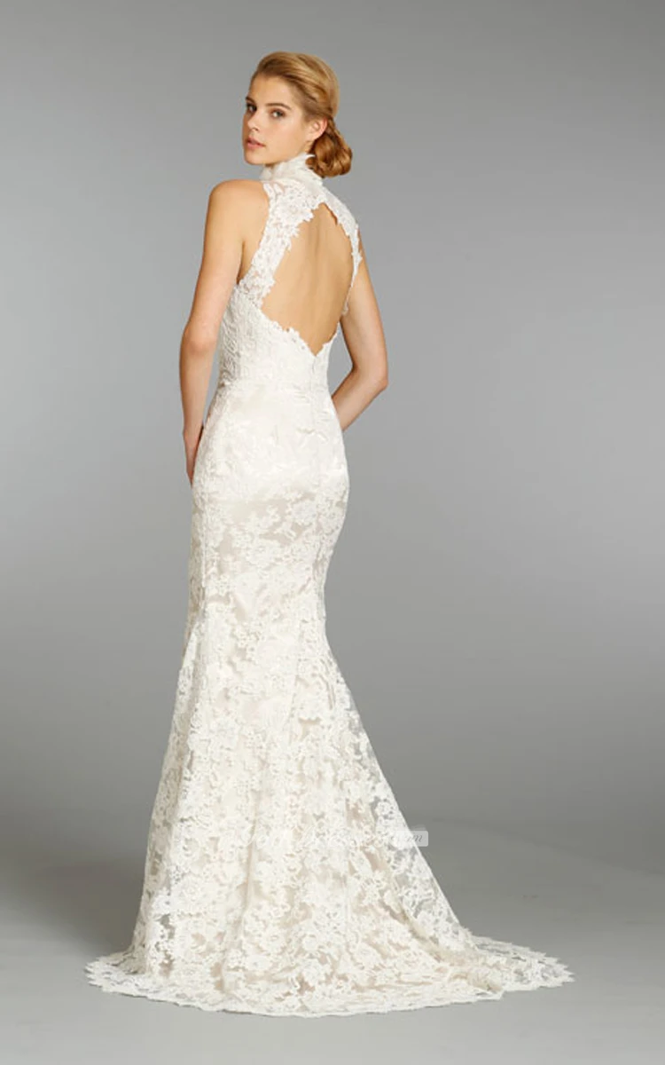High Neck Floor Length Lace Dress With Keyhole Back